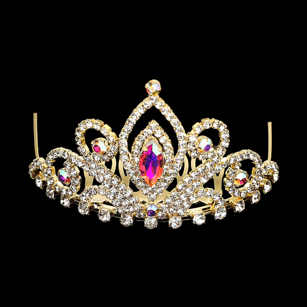 Marquise Stone Pointed Rhinestone Paved Princess Mini Tiara