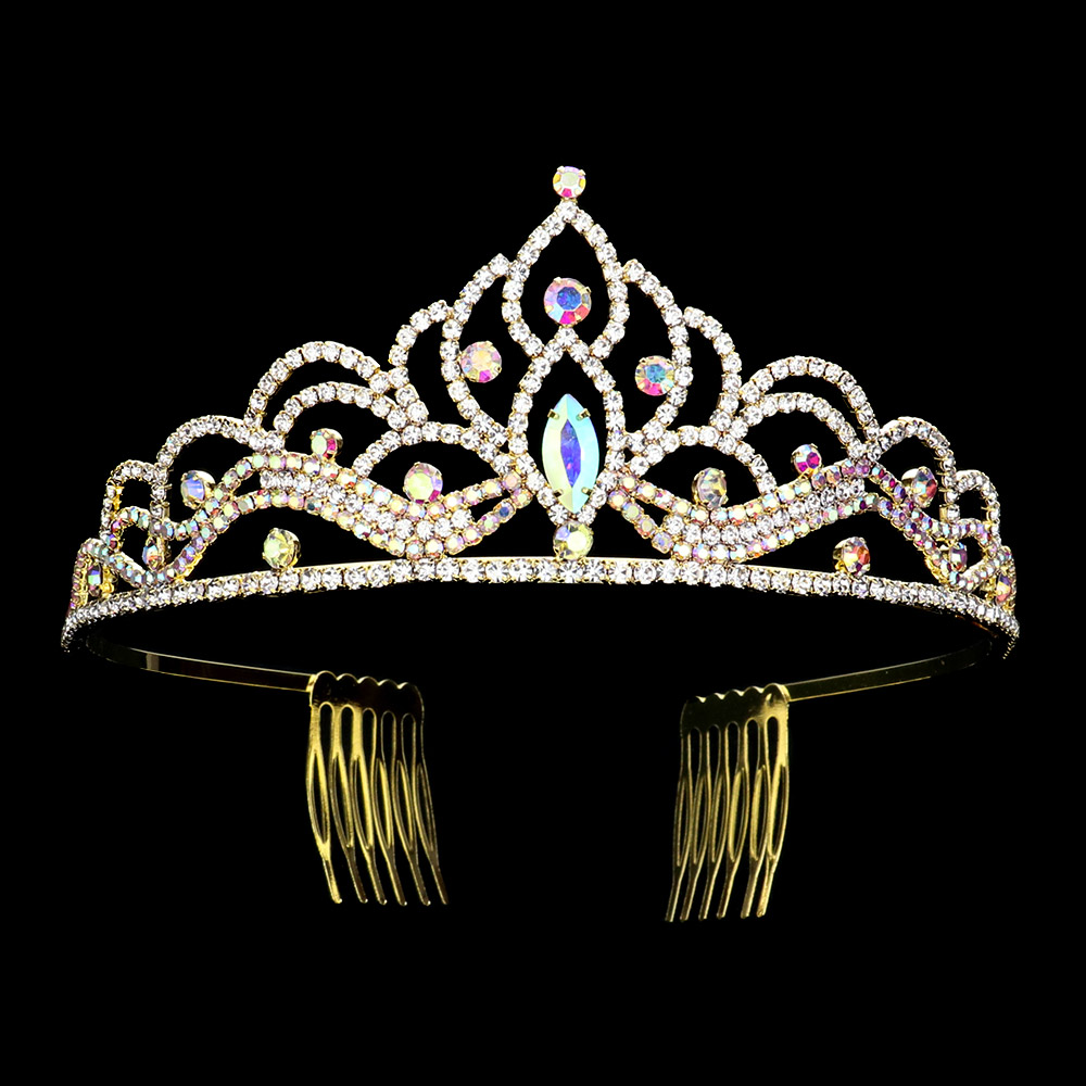 Marquise Stone Pointed Rhinestone Paved Princess Tiara