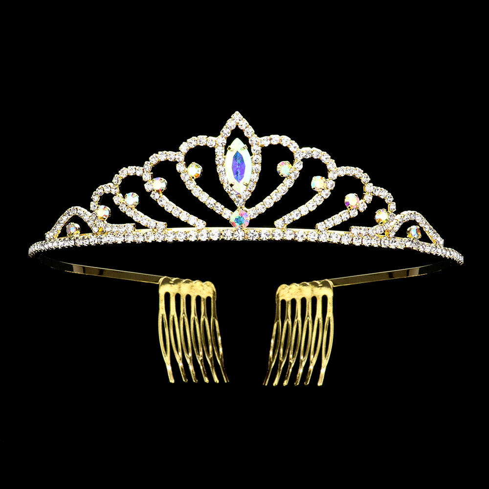 Marquise Stone Pointed Rhinestone Paved Princess Tiara