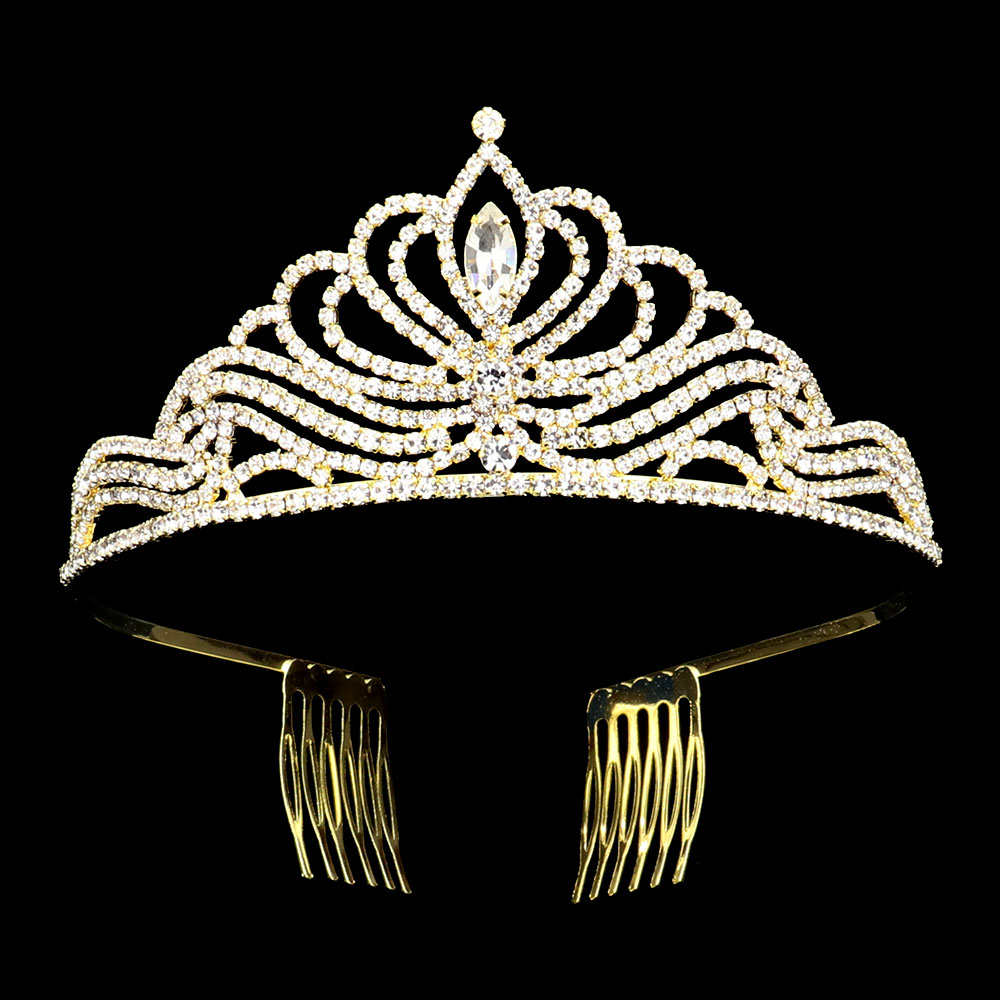 Marquise Stone Pointed Rhinestone Paved Princess Tiara