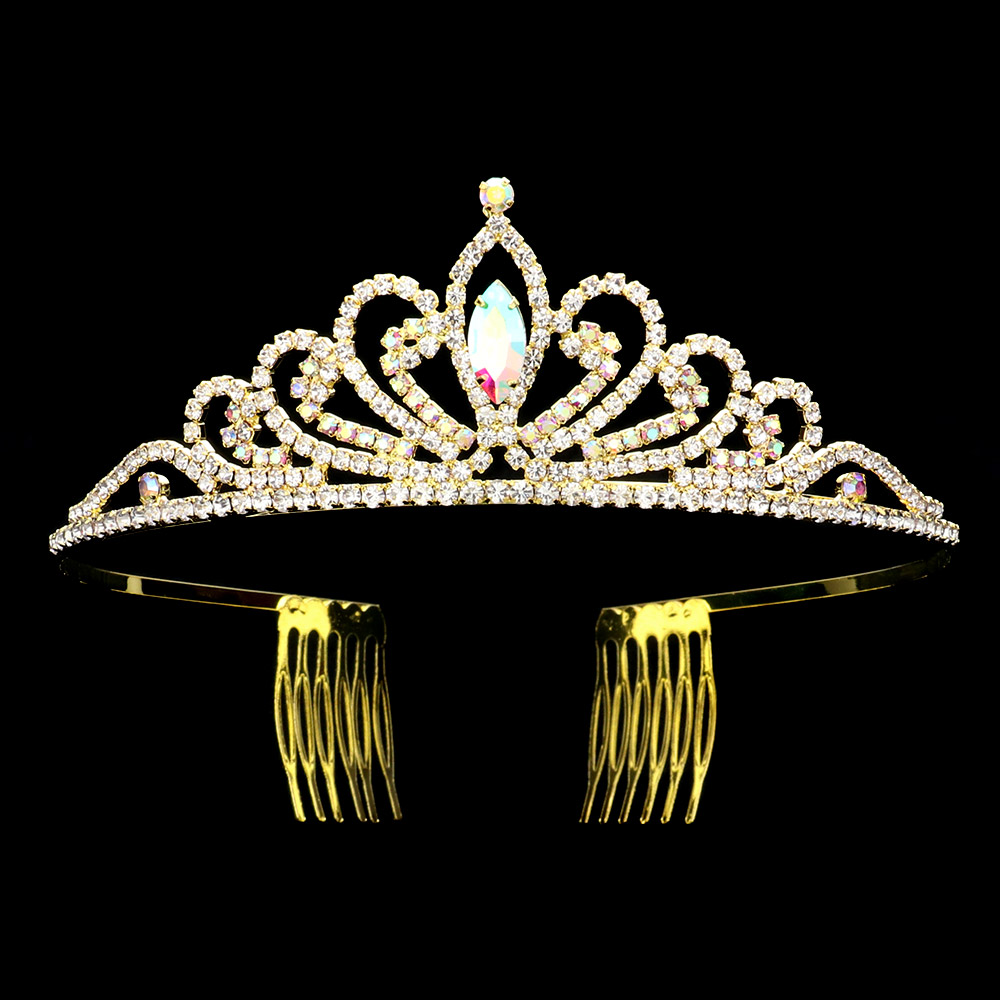 Marquise Stone Pointed Rhinestone Paved Princess Tiara