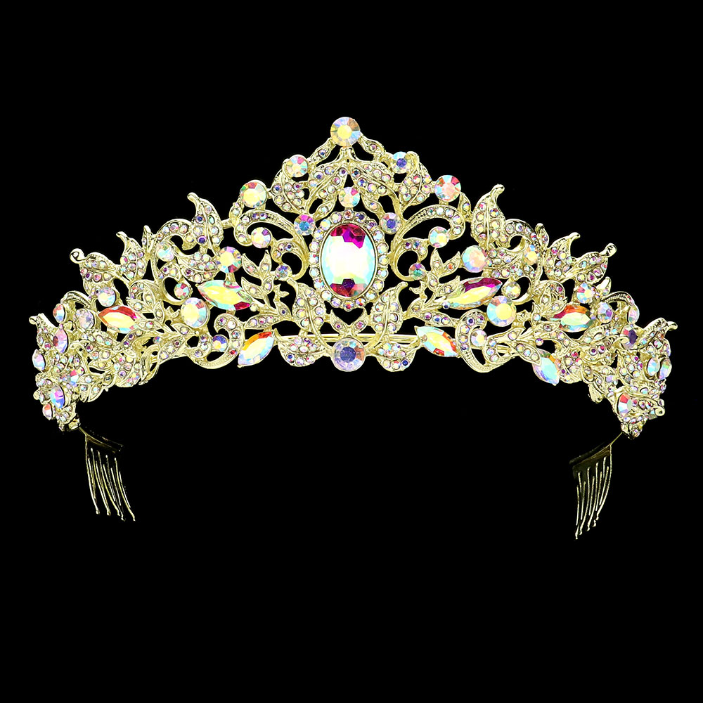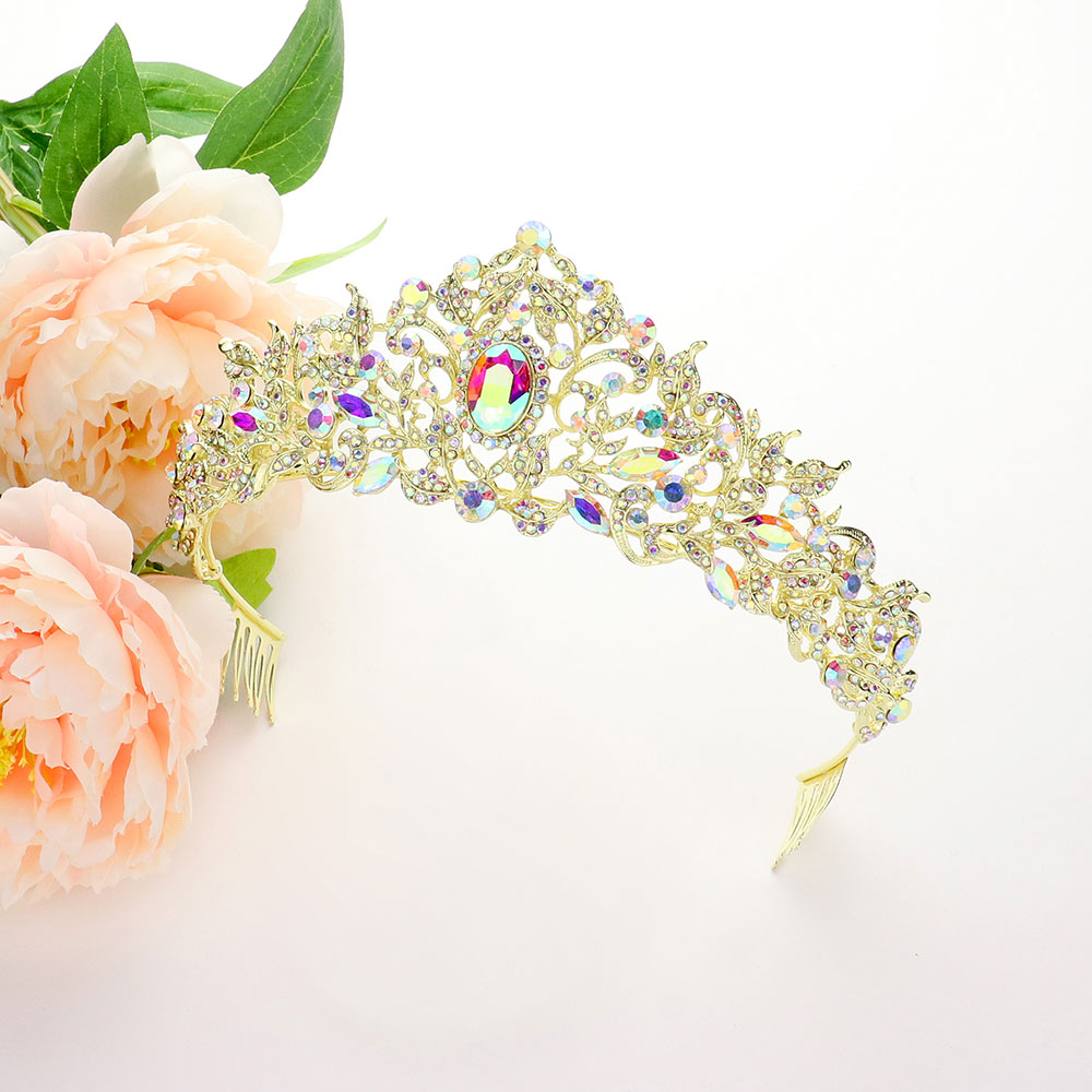 Oval Round Stone Pointed Rhinestone Paved Queen Tiara