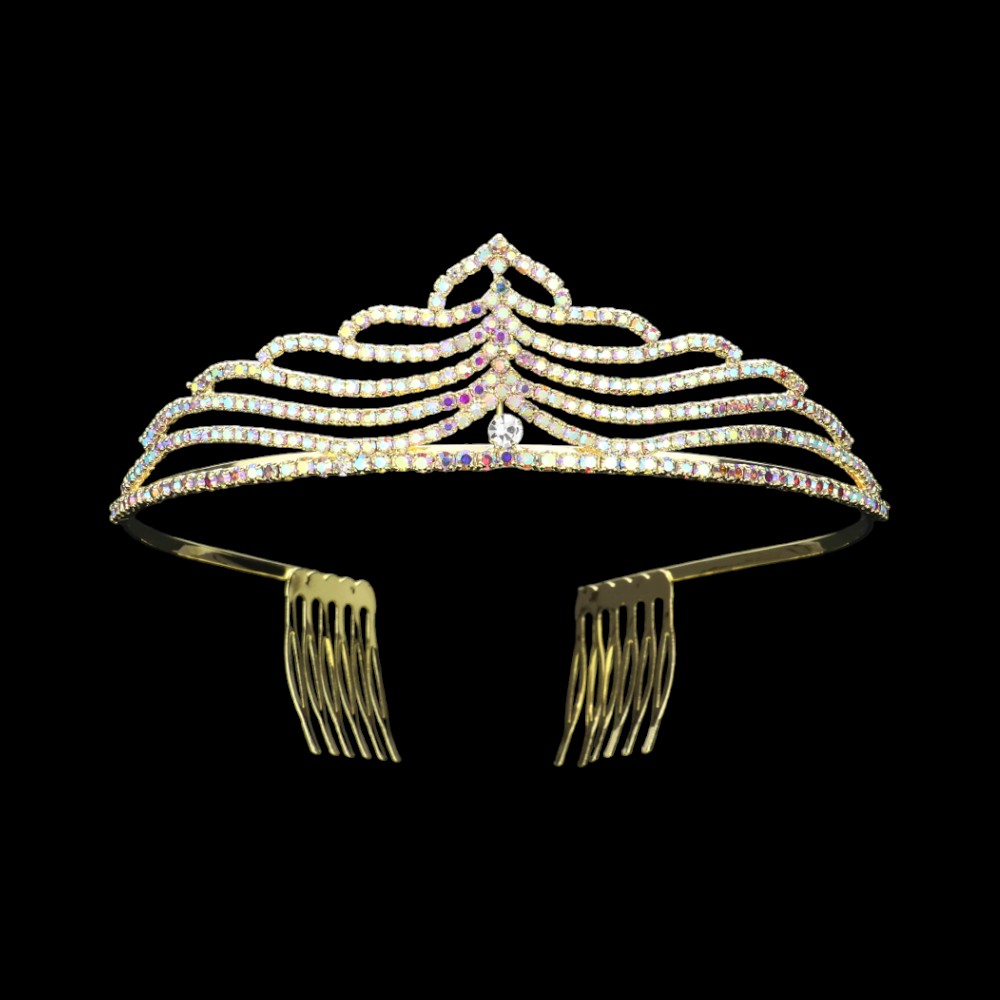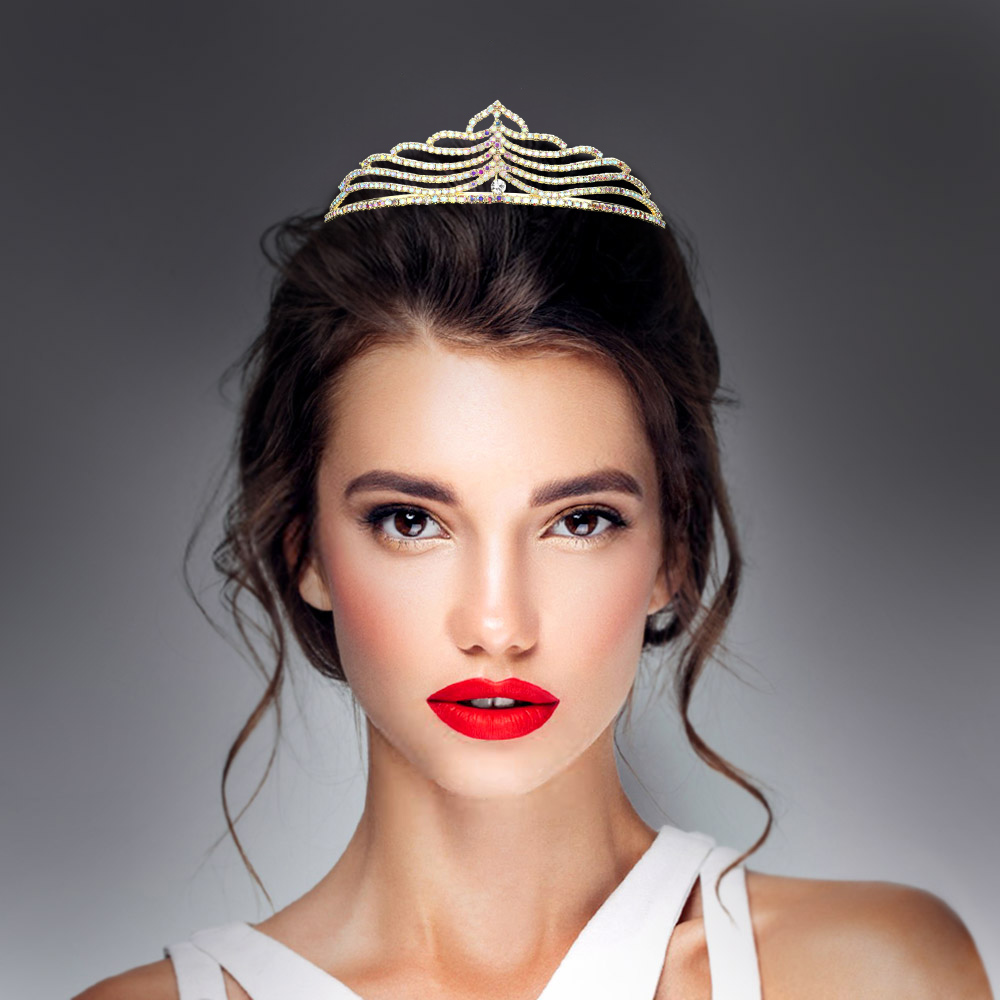Teardrop Stone Accented Round Rhinestone Embellished Queen Tiara