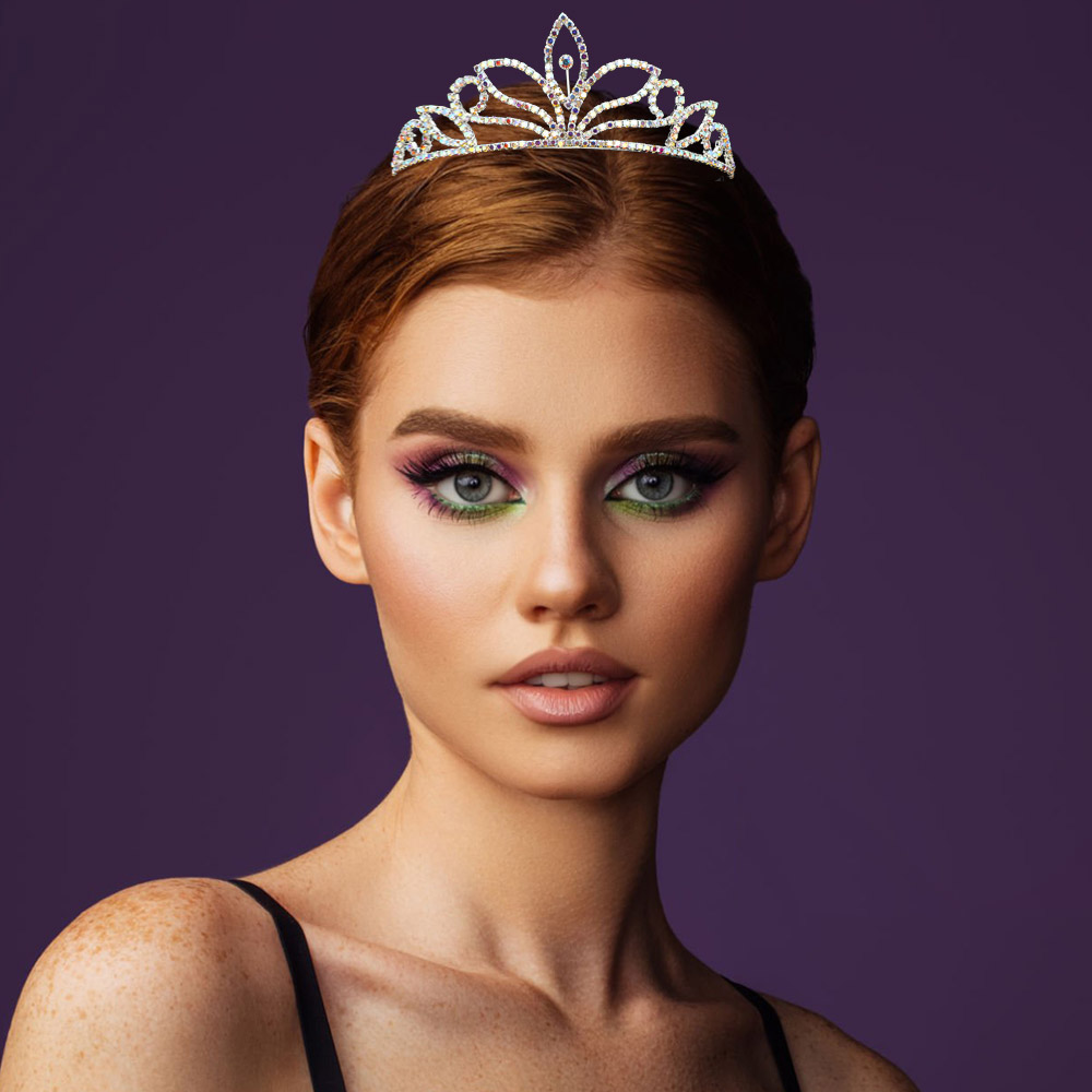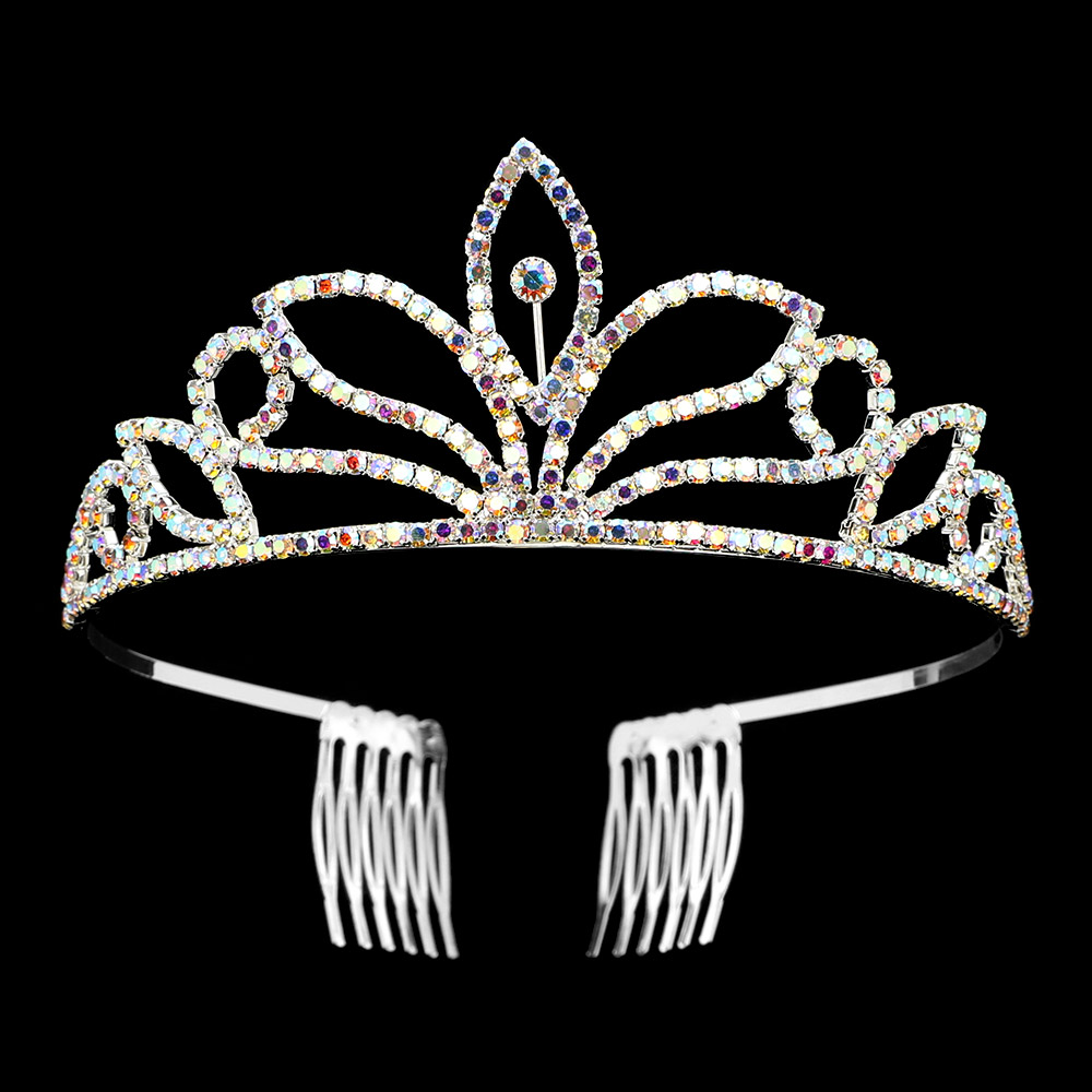 • Make a statement with this elegant rhinestone tiara featuring a graceful floral scroll design and shimmering crystal embellishments. Perfect for pageants, weddings, or special events, it offers secure comb ends for a comfortable, all-day regal look.