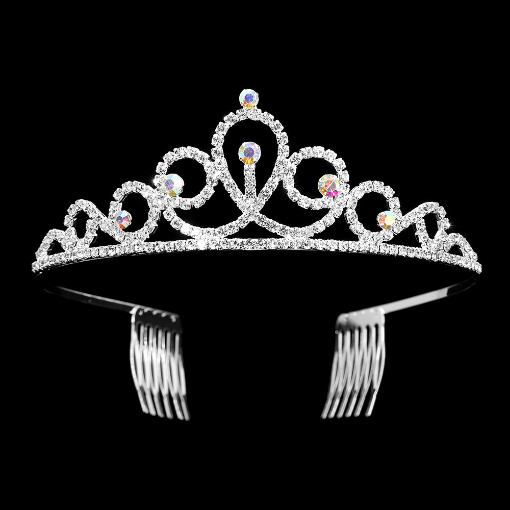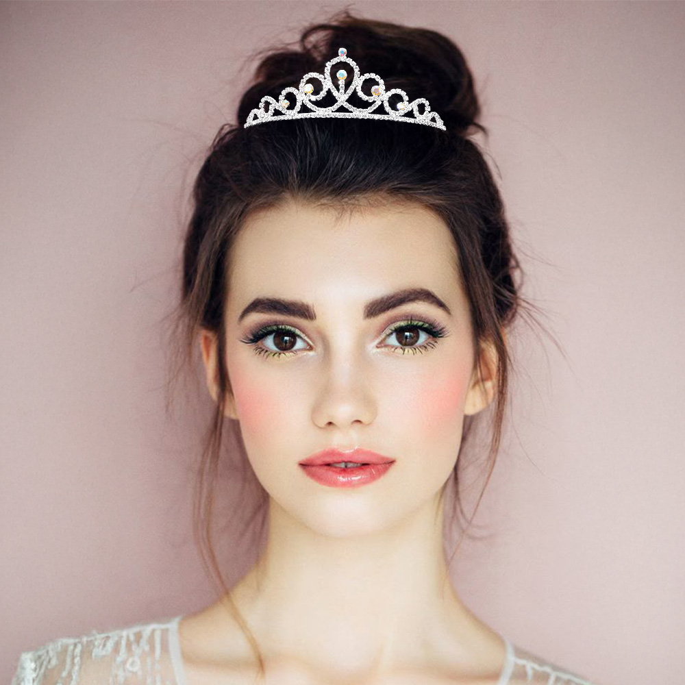 Round Crystal Accent Rhinestone Paved Princess Tiara
