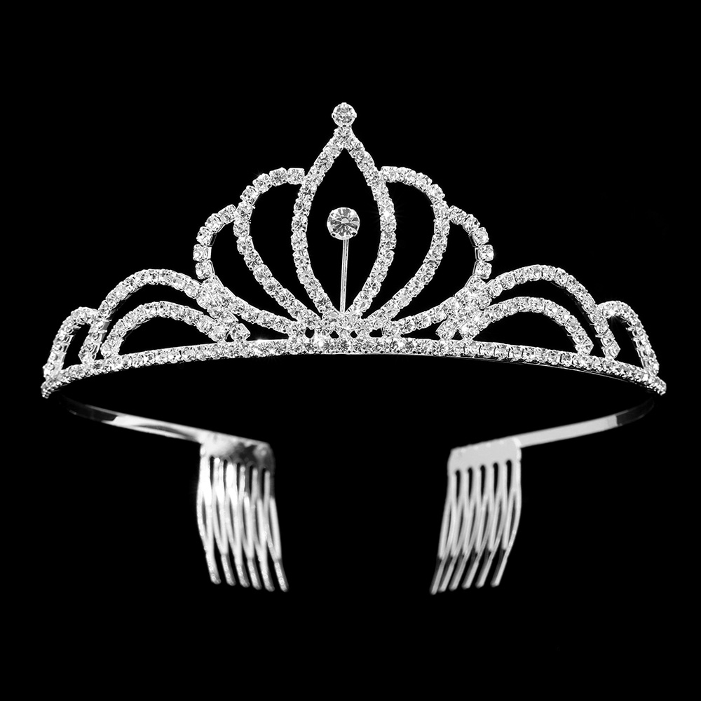 Round Stone Accented Rhinestone Paved Princess Tiara