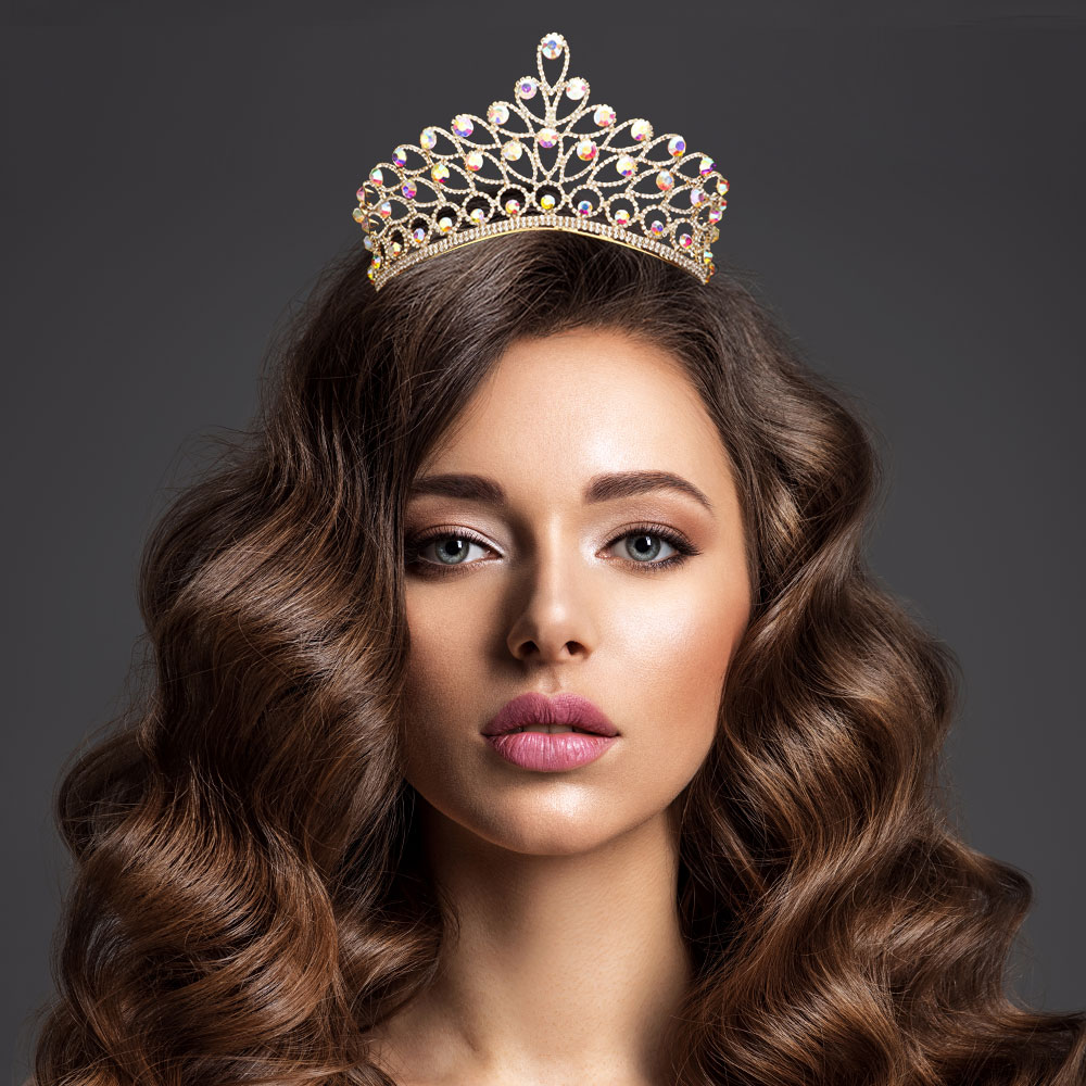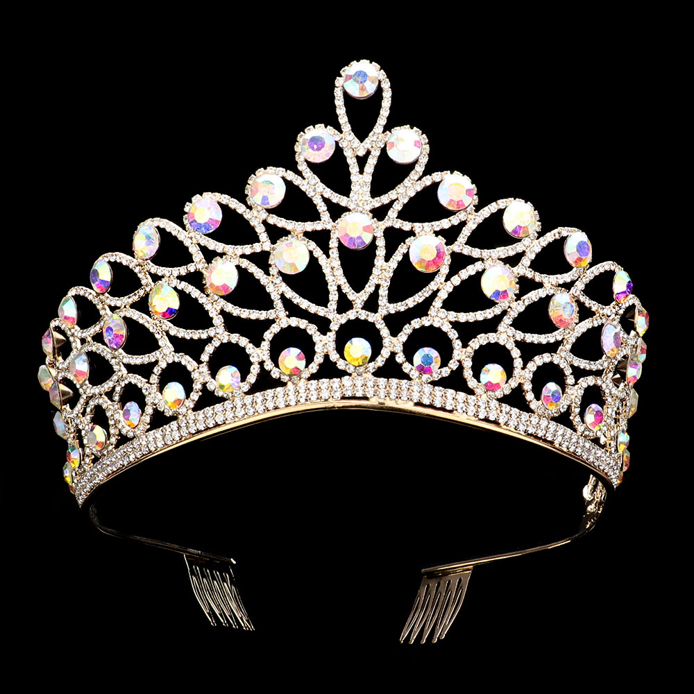 Round Stone Embellished Rhinestone Paved Princess Tiara