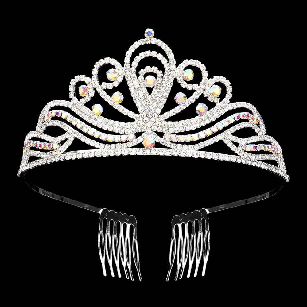 Round Stone Pointed Rhinestone Paved Princess Tiara