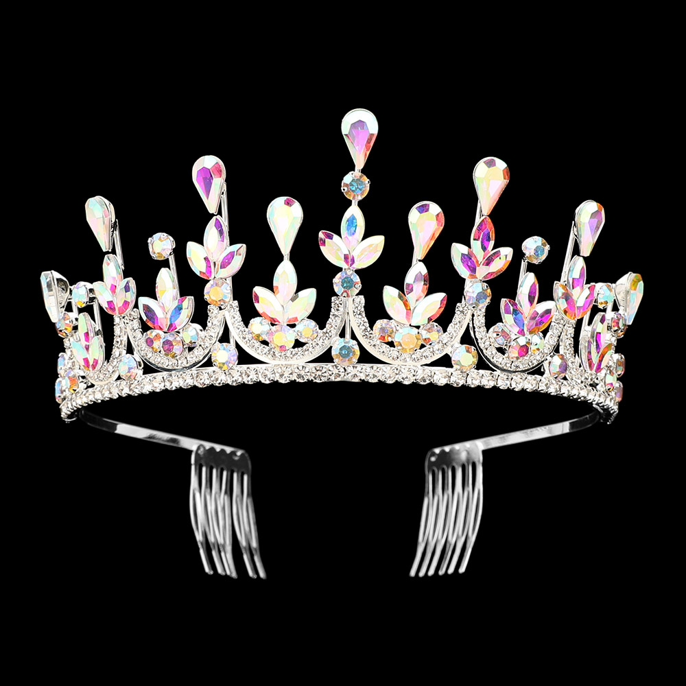 • Elegant crystal tiara featuring sparkling floral motifs, teardrop accents, and a graceful arched silhouette. Includes secure side combs for a comfortable, stable fit. Perfect for weddings, pageants, quinceañeras, proms, and formal events.