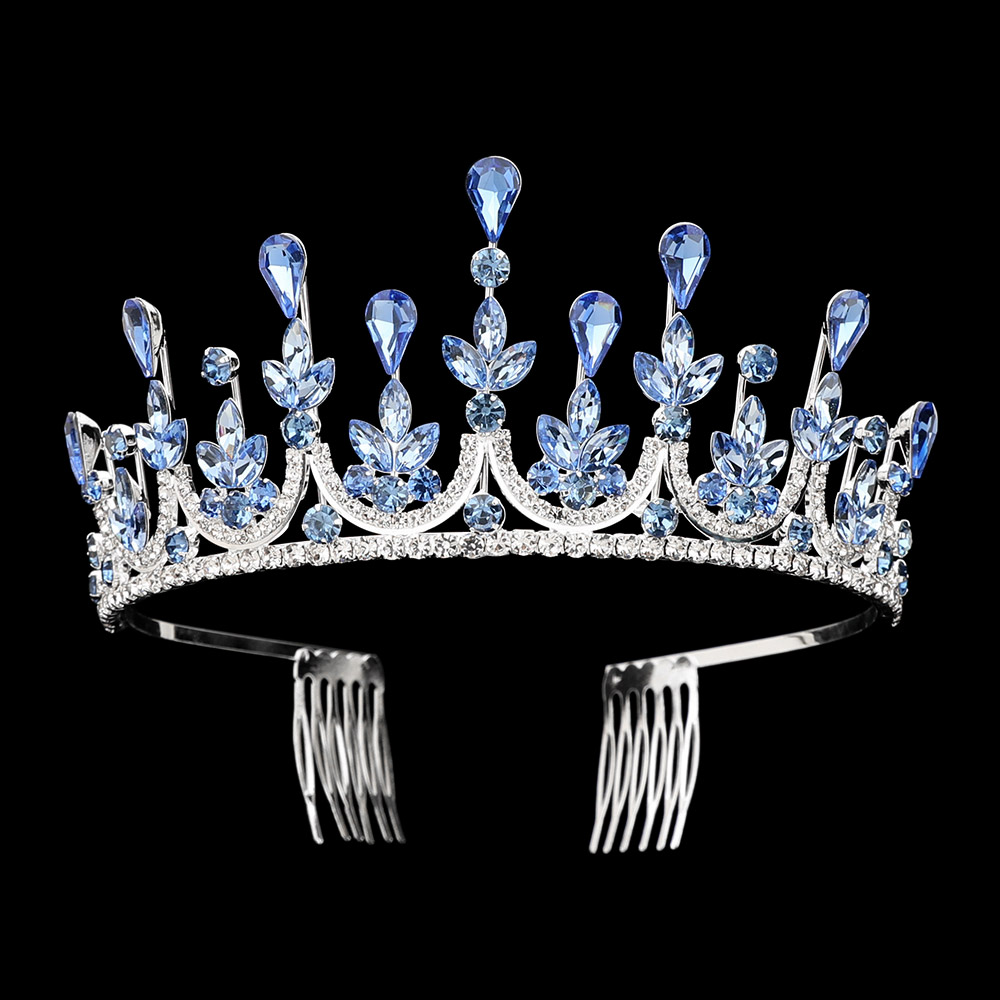 • Elegant crystal tiara featuring sparkling floral motifs, teardrop accents, and a graceful arched silhouette. Includes secure side combs for a comfortable, stable fit. Perfect for weddings, pageants, quinceañeras, proms, and formal events.