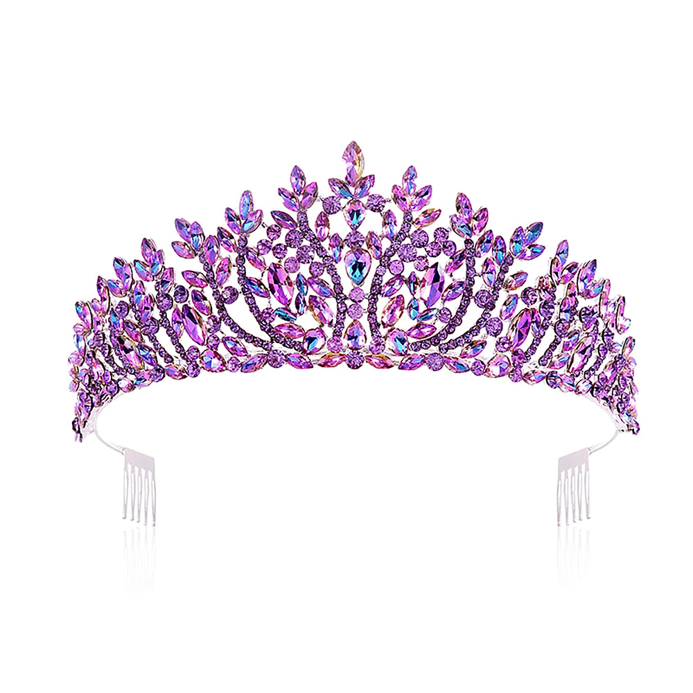 • Dazzling rhinestone tiara crown designed with intricate leaf patterns that radiate elegance and brilliance. Perfect for brides, pageants, proms, or formal occasions, this crown adds a royal touch to any hairstyle. Featuring secure combs for stability, it shines beautifully for unforgettable moments.