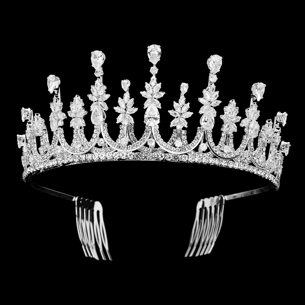 Details • Size : 2.4" H • Make a majestic statement with this regal crystal crown tiara, perfect for brides, pageants, or formal events. Featuring tall spires and intricate detailing, it adds a royal touch to veils and updos. A dazzling accessory designed for elegance and grandeur on special occasions.