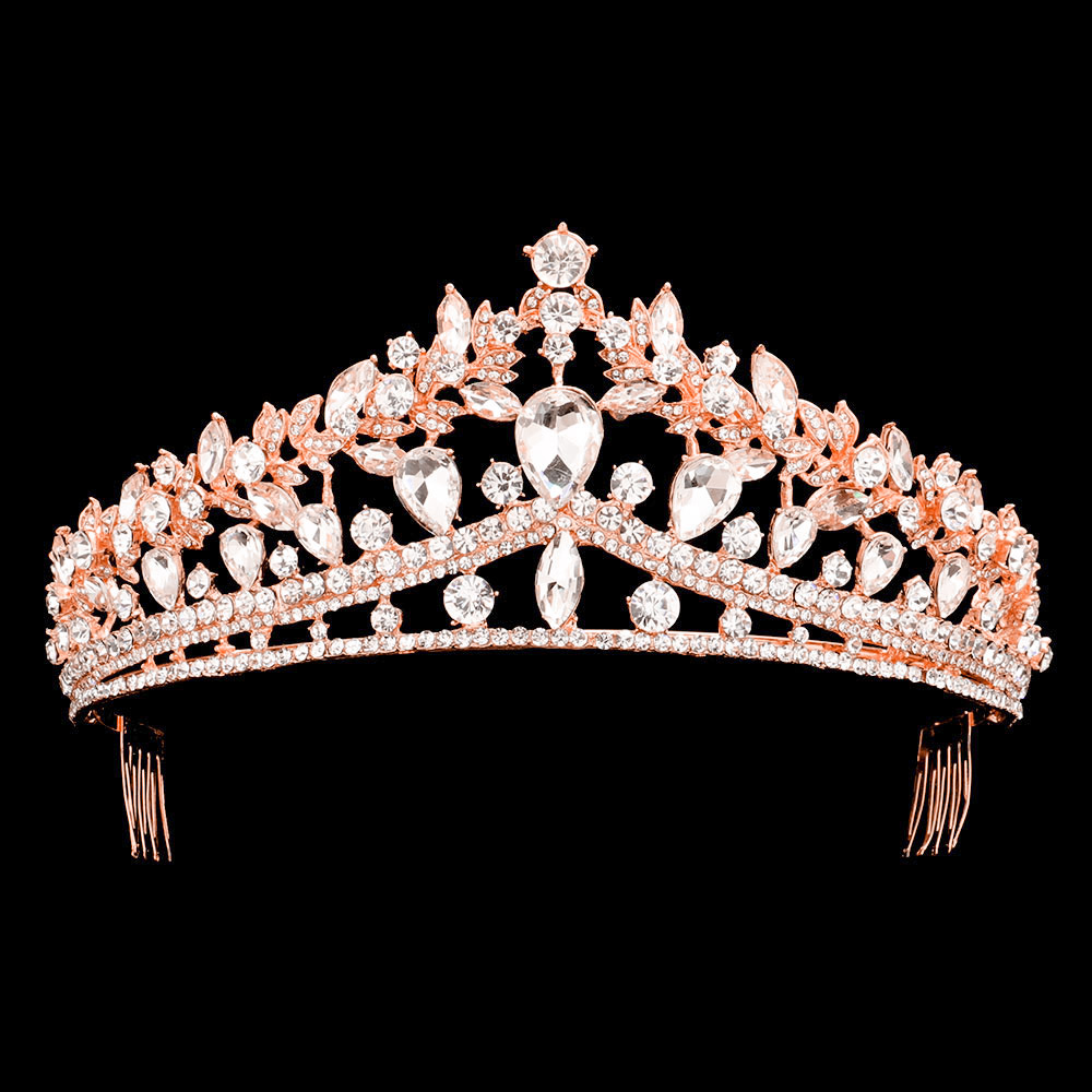 Teardrop Stone Cluster Accented Marquise Round Stone Embellished Pageant Princess Tiara