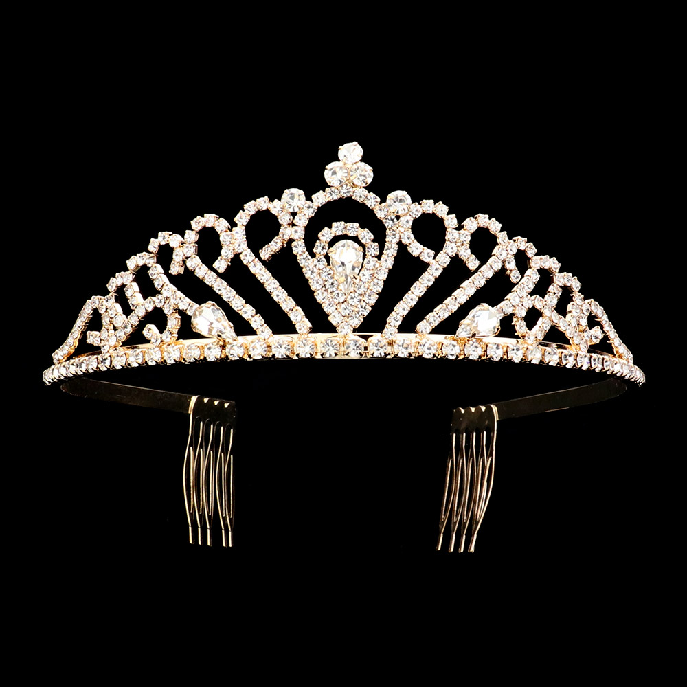 Teardrop Stone Cluster Pointed Rhinestone Paved Princess Tiara