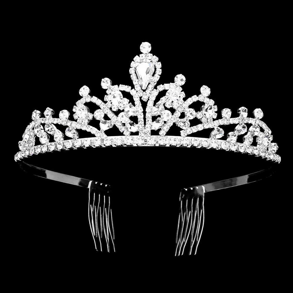 • Ornate tiara crown featuring intricate detailing and sparkling rhinestones. Ideal for weddings, pageants, proms, or formal events, this headpiece adds a regal and graceful touch to any special occasion look.