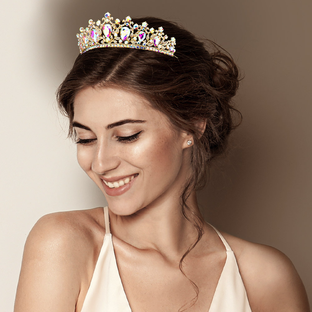 Teardrop Stone Rhinestone Accented Prom Party Princess Tiara