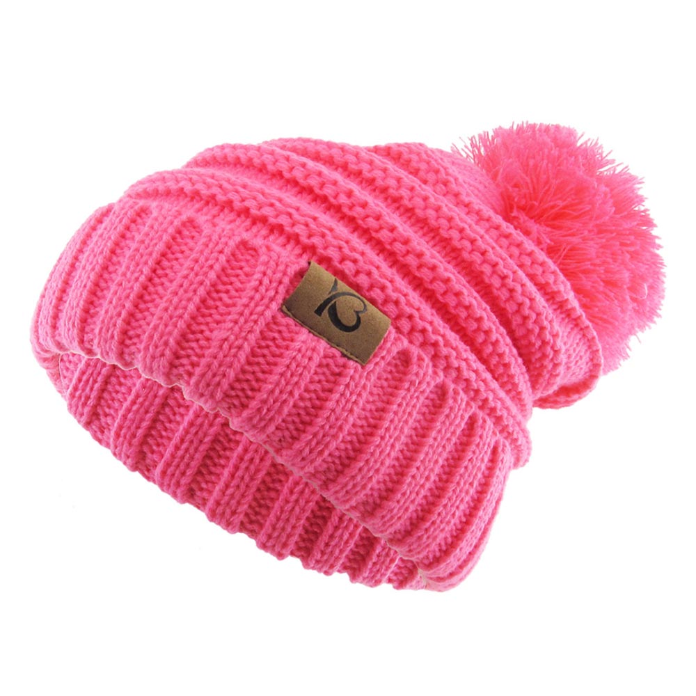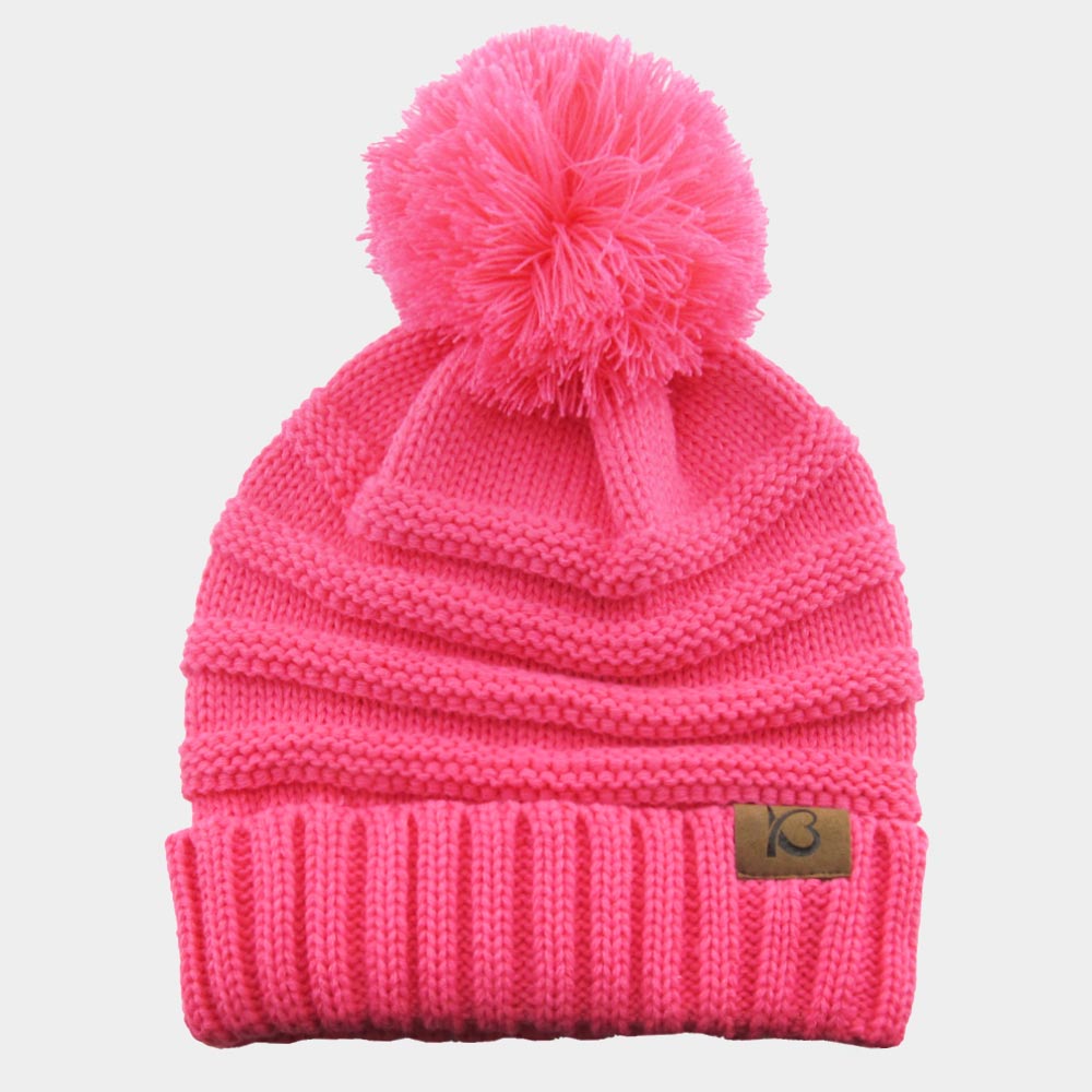 Cable Knit Ribbed Chunk Pom Pom Beanie Hat