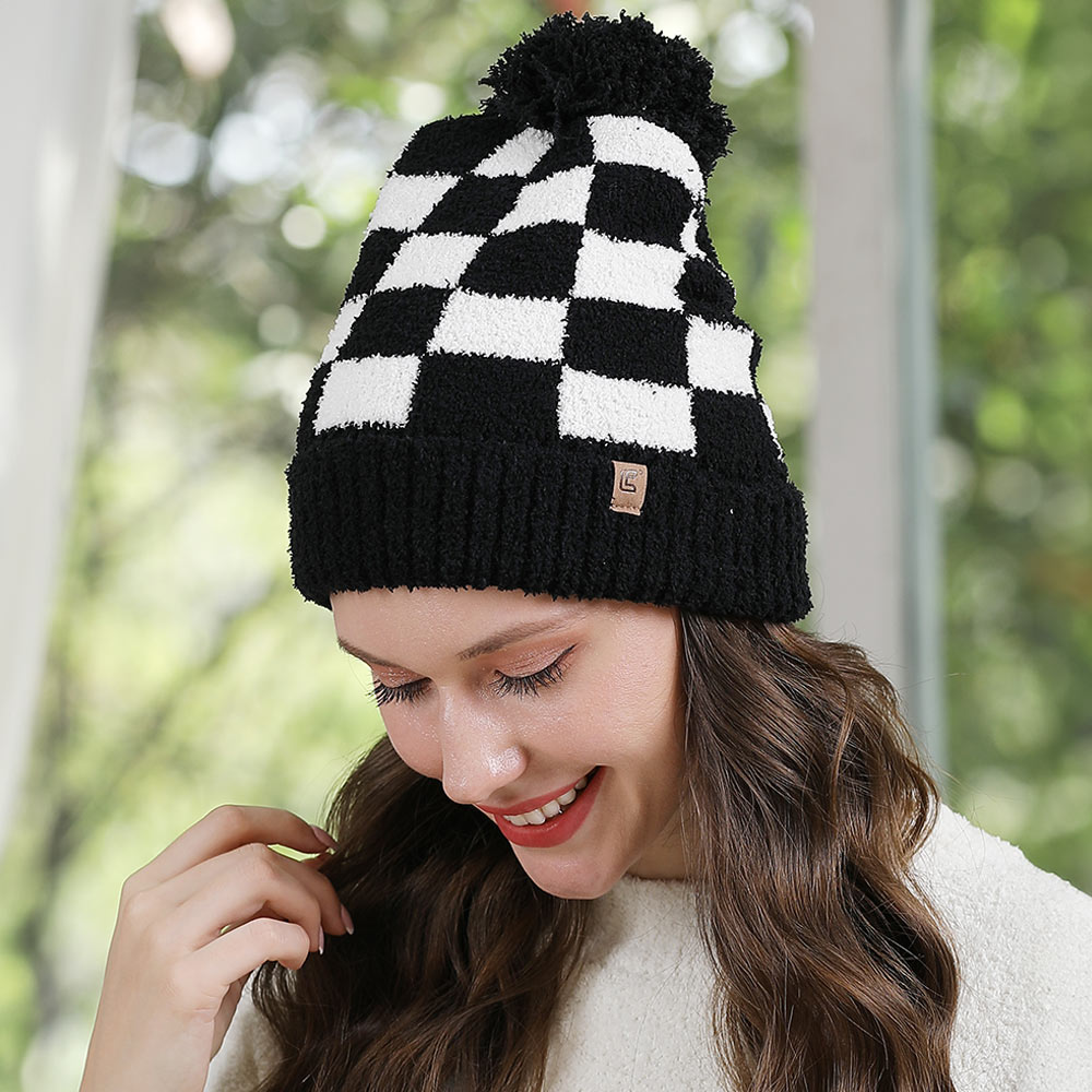 Double Layer Bedazzled Cuffed Pom Pom Beanie Hat