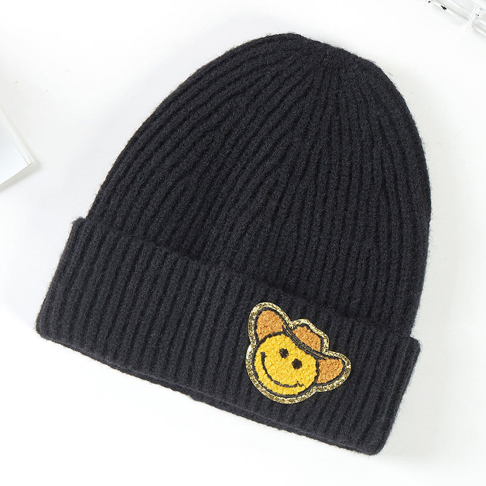 Cowboy Hat Smile Accented Knit Beanie Hat