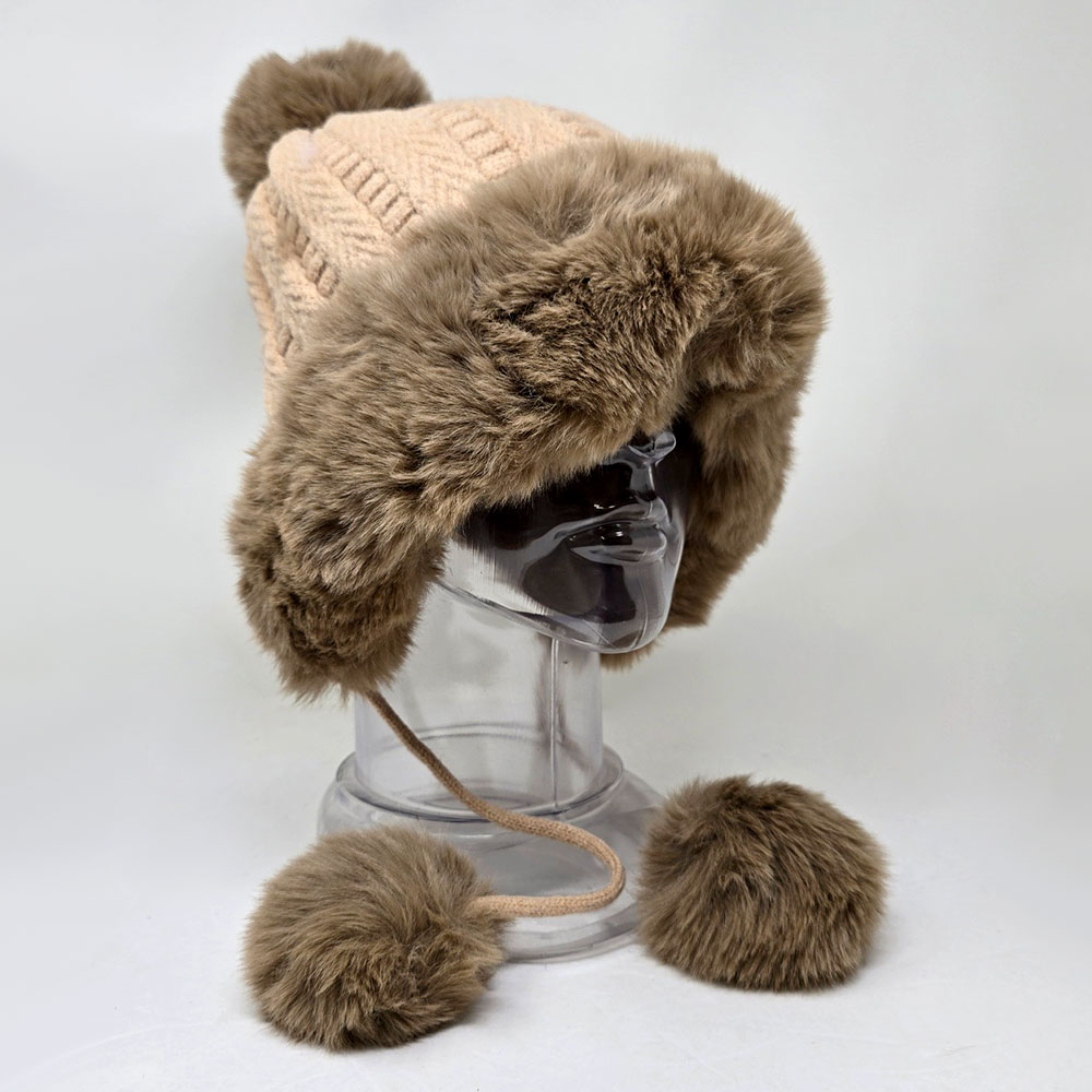 Details • Size : One Size (24" L) • Material : 100% Acrylic • Stay cozy and stylish with this winter trapper hat featuring plush ear flaps and playful pom-poms. Designed for warmth and comfort, it offers full coverage against cold weather. Perfect for outdoor activities, travel, or casual wear, this hat combines practicality with a fun, fashionable look.