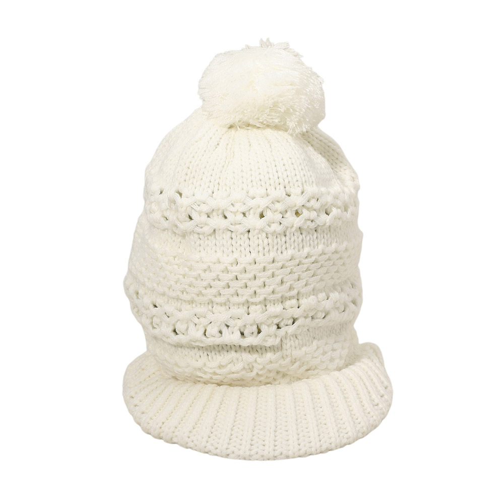 Details • Size : One Size • Material : 100% Acrylic • Stay warm and stylish with this chunky knit pom beanie featuring a unique visor brim. The textured design adds extra charm and comfort, making it a cozy essential for cold-weather days, casual outings, or holiday wear.