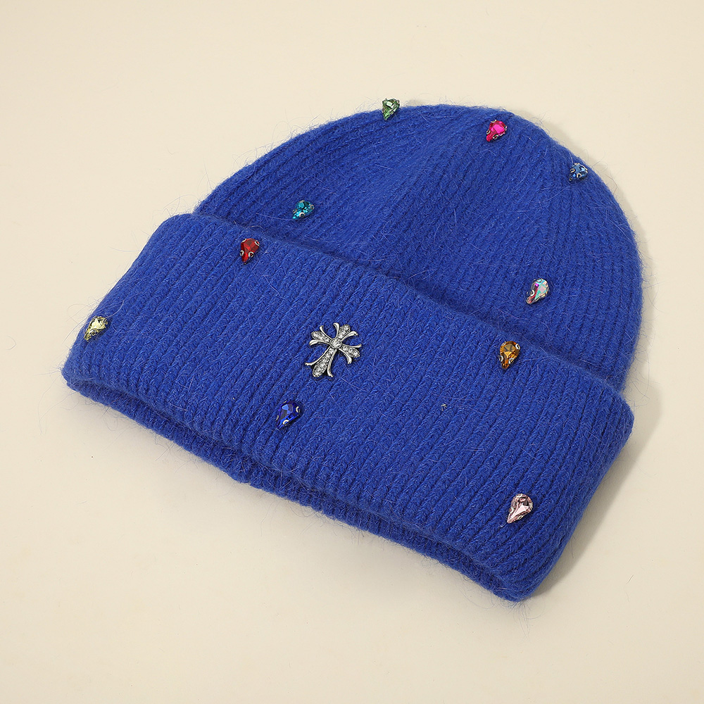 Rhinestone Cross Accent Teardrop Stone Cluster Embellished Knit Beanie Hat