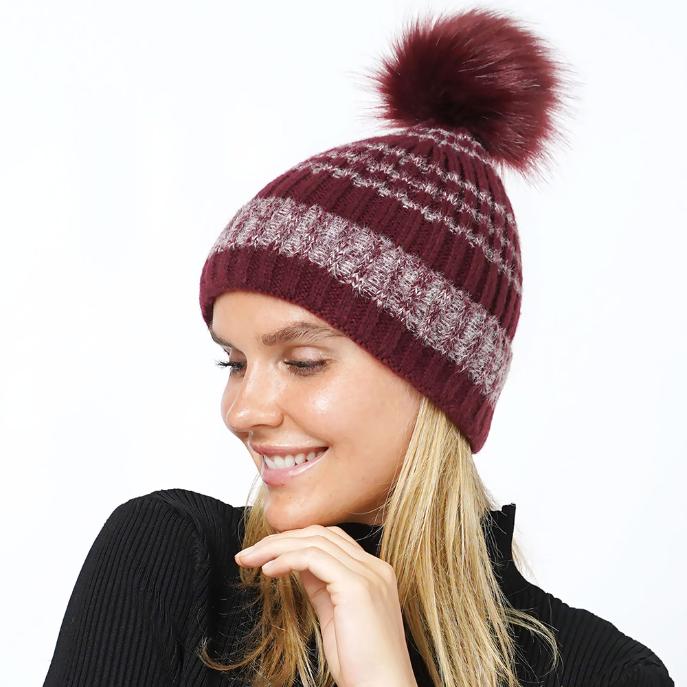 -H- Initial Monogram Faux Fur Pom Pom Knit Beanie Hat