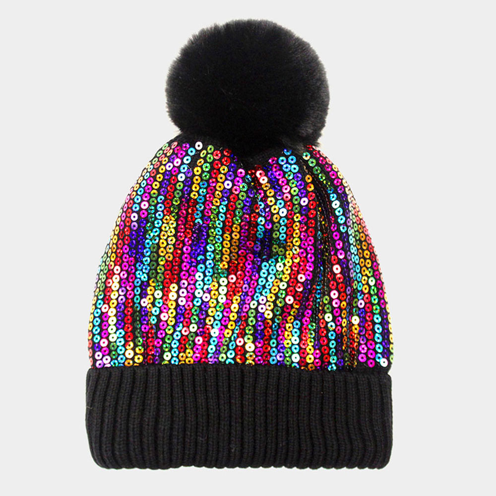 Details • Size : 7.75" X 11" • 100% Acrylic • Add standout flair to any outfit with this pom beanie hat featuring an eye-catching, shimmer-inspired design and cozy fit. A stylish cold-weather essential made to elevate everyday looks, perfect for casual wear, seasonal outings, festivals, or gifting moments.