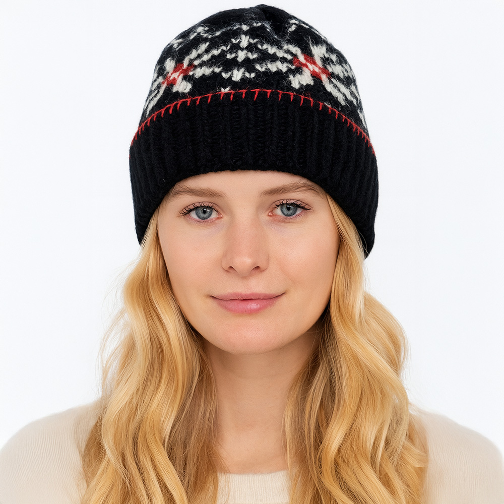 • Stay cozy in style with this Fair Isle knit beanie, featuring a timeless winter pattern and ribbed fold-over brim for a snug fit. Perfect for cold-weather outings, skiing, or casual wear, this versatile hat combines warmth and comfort with a classic design that never goes out of style.