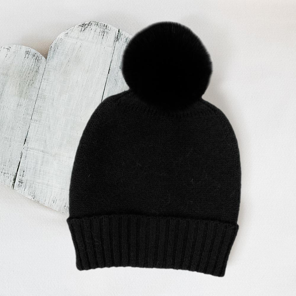 Double Layer Bedazzled Cuffed Pom Pom Beanie Hat
