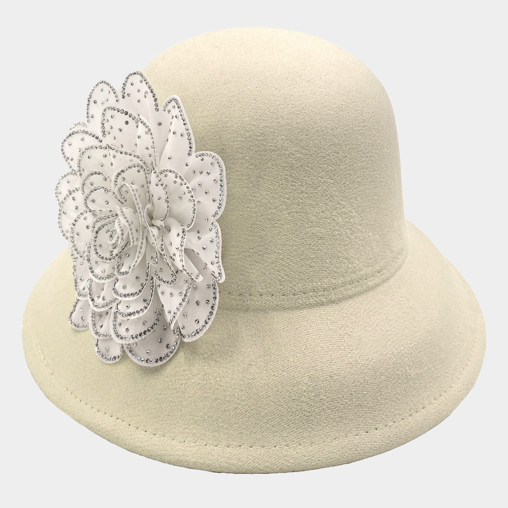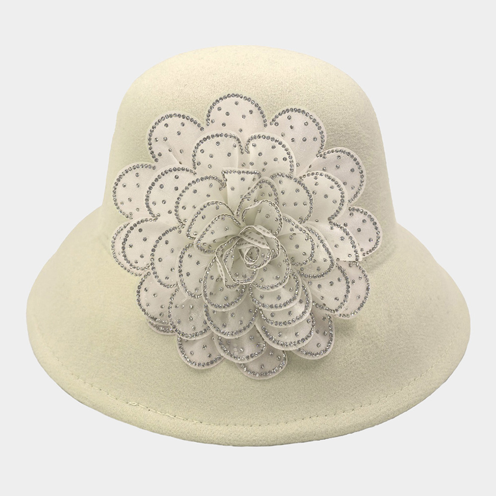 Bling Studded Flower Felt Wedding Jazz Church Bucket Hat
