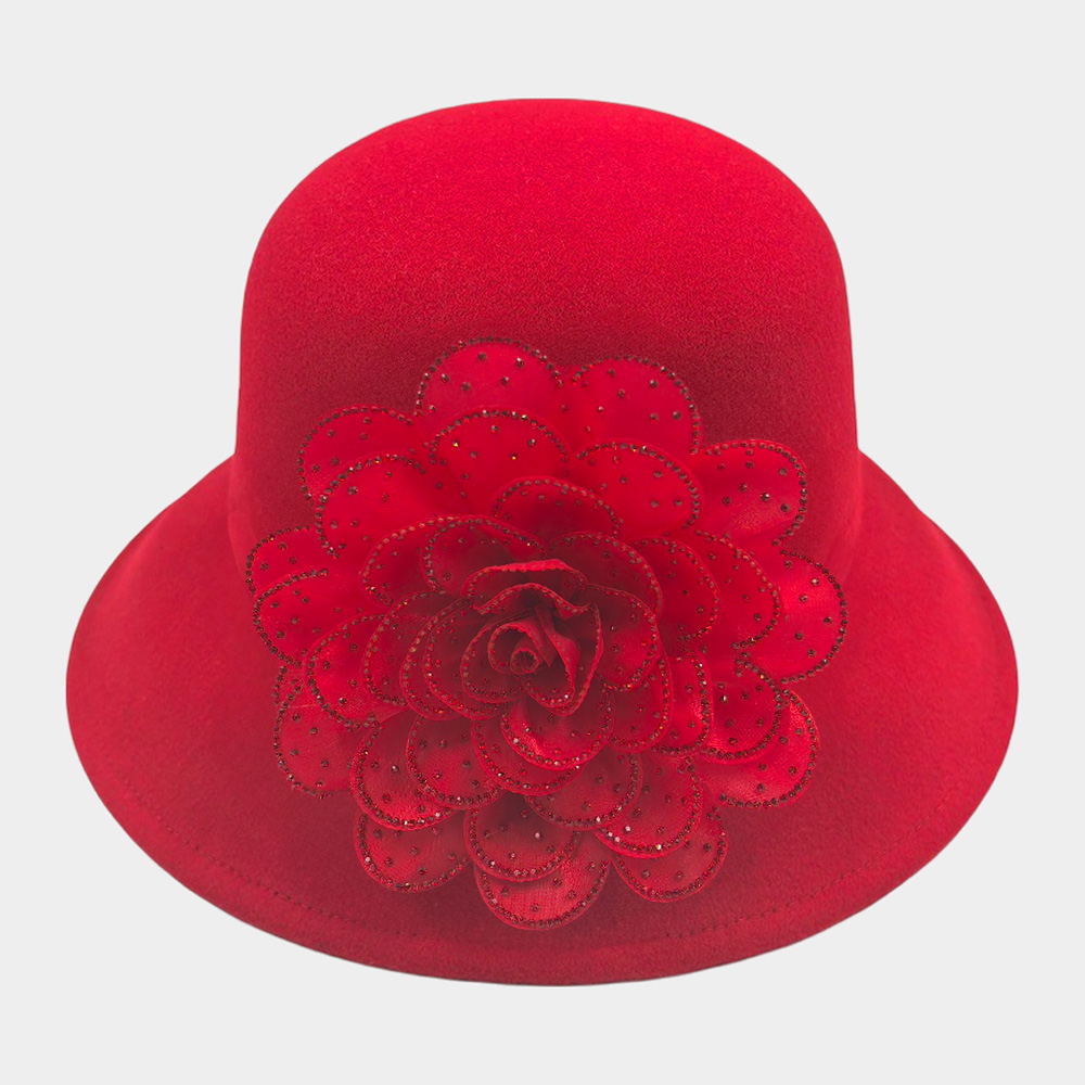 Bling Studded Flower Felt Wedding Jazz Church Bucket Hat