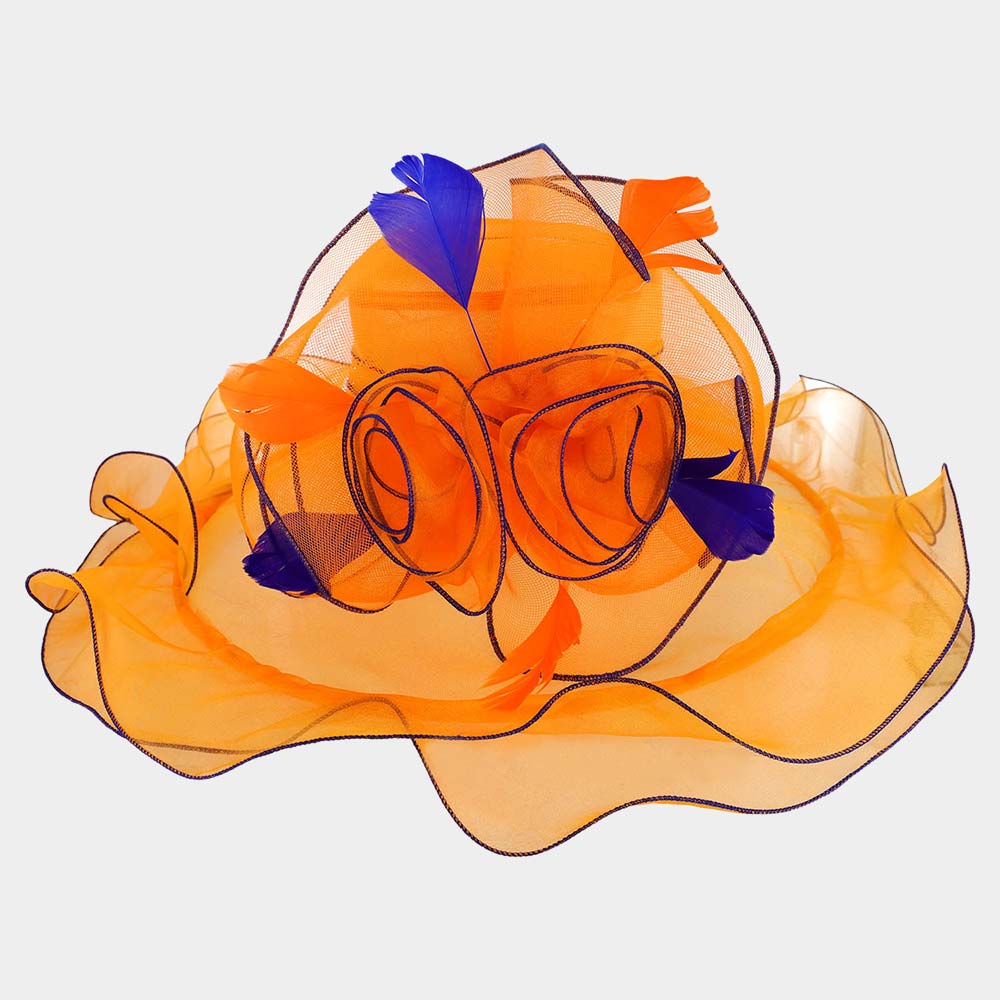 Flower Feather Accented Double Layered Organza Hat
