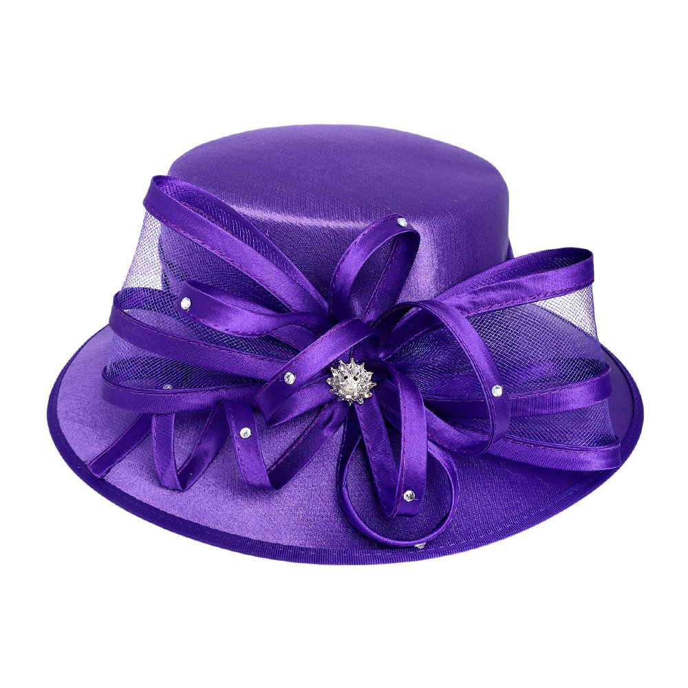 Flower Mesh Bow Accented Dressy Hat Flower Mesh Bow Accented Dressy Hat Flower Mesh Bow Accented Dressy Hat