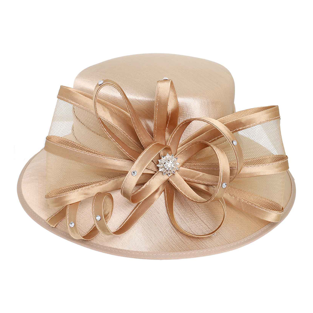 Wide Brim Rhinestone Embellished Bow Accent Dressy Hat