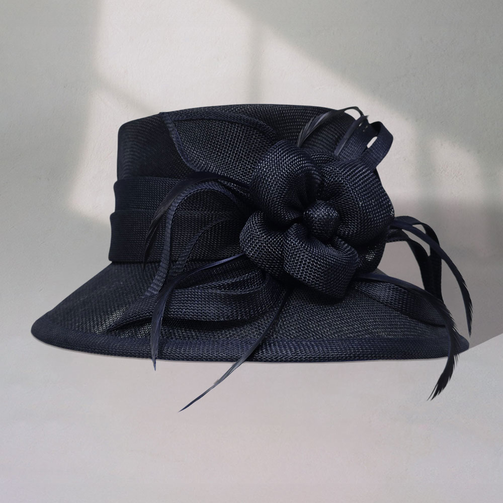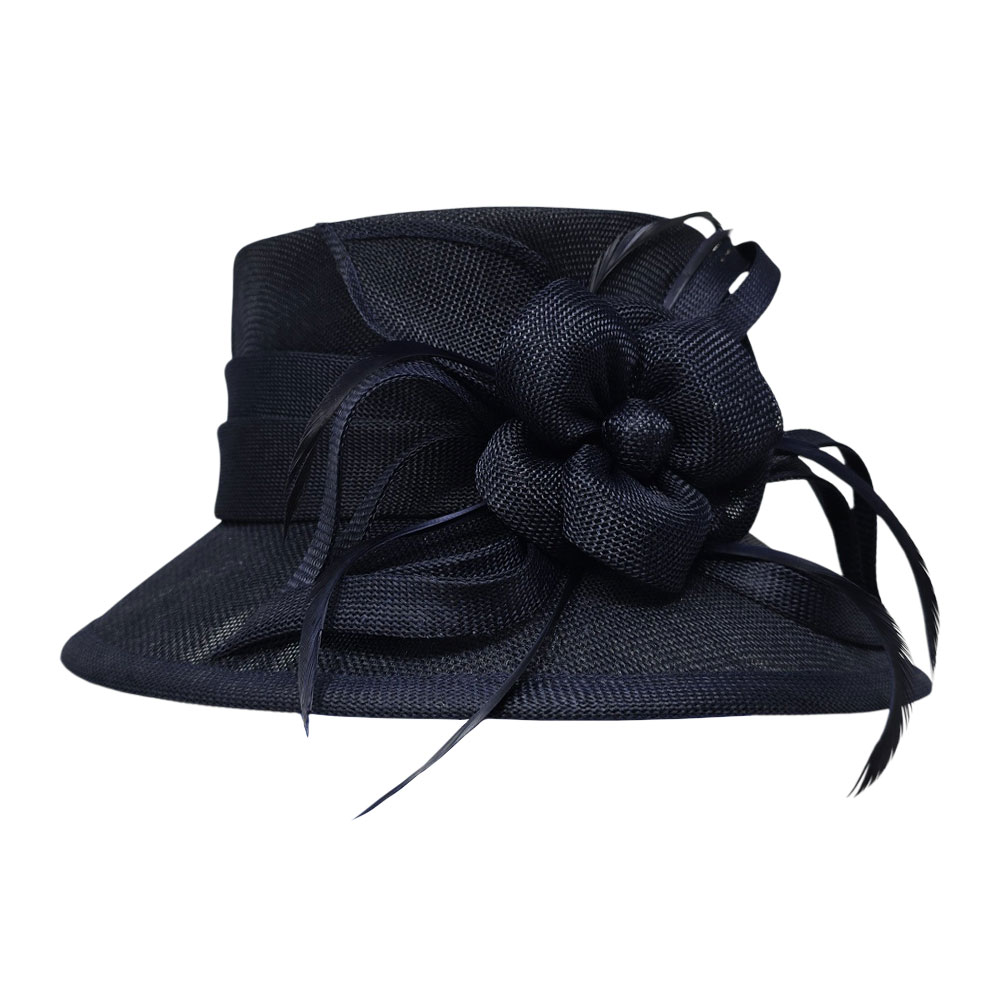 Flower Ribbon Feather Accented Sinamay Dressy Hat Flower Ribbon Feather Accented Sinamay Dressy Hat