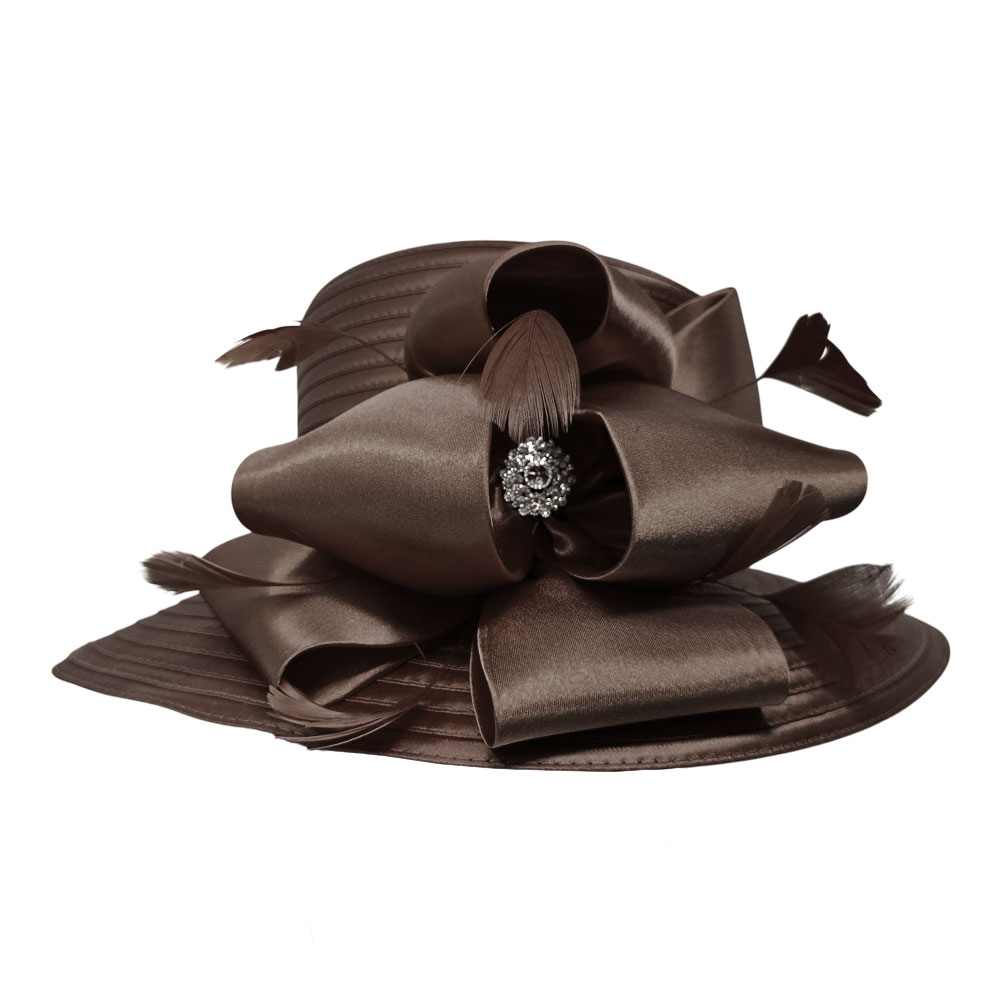 Rhinestone Center Feather Bow Accent Dressy Hat