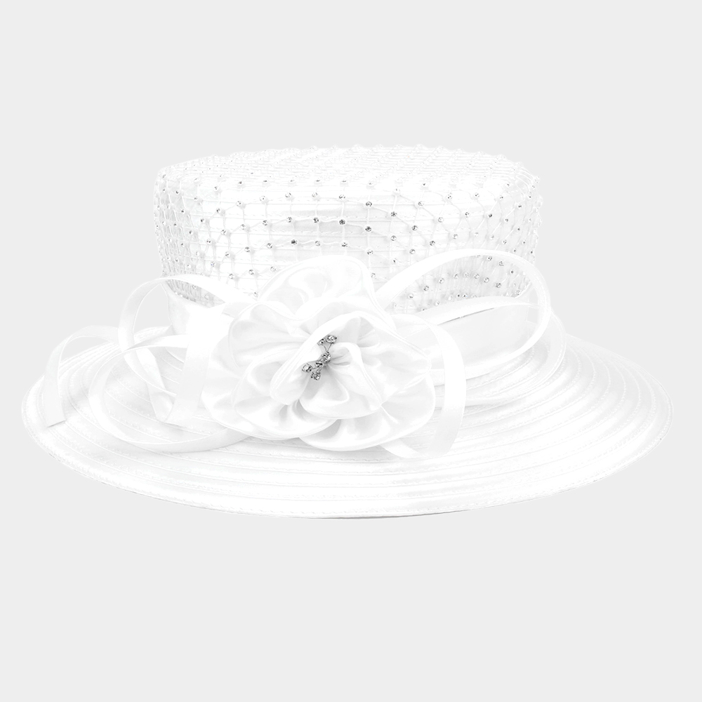 Flower Ribbon Feather Accented Sinamay Dressy Hat