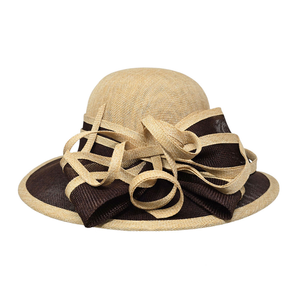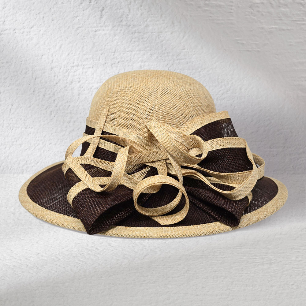 Two Tone Bow Accent Elegant Sinamay Dressy Hat