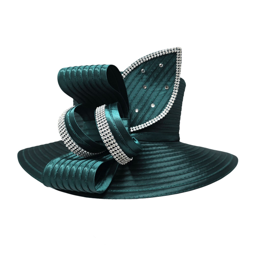 • Make a grand entrance with this elegant wide brim hat featuring bold decorative loops and sparkling rhinestone accents. Perfect for weddings, church events, or formal gatherings, this statement hat combines sophistication with standout style.