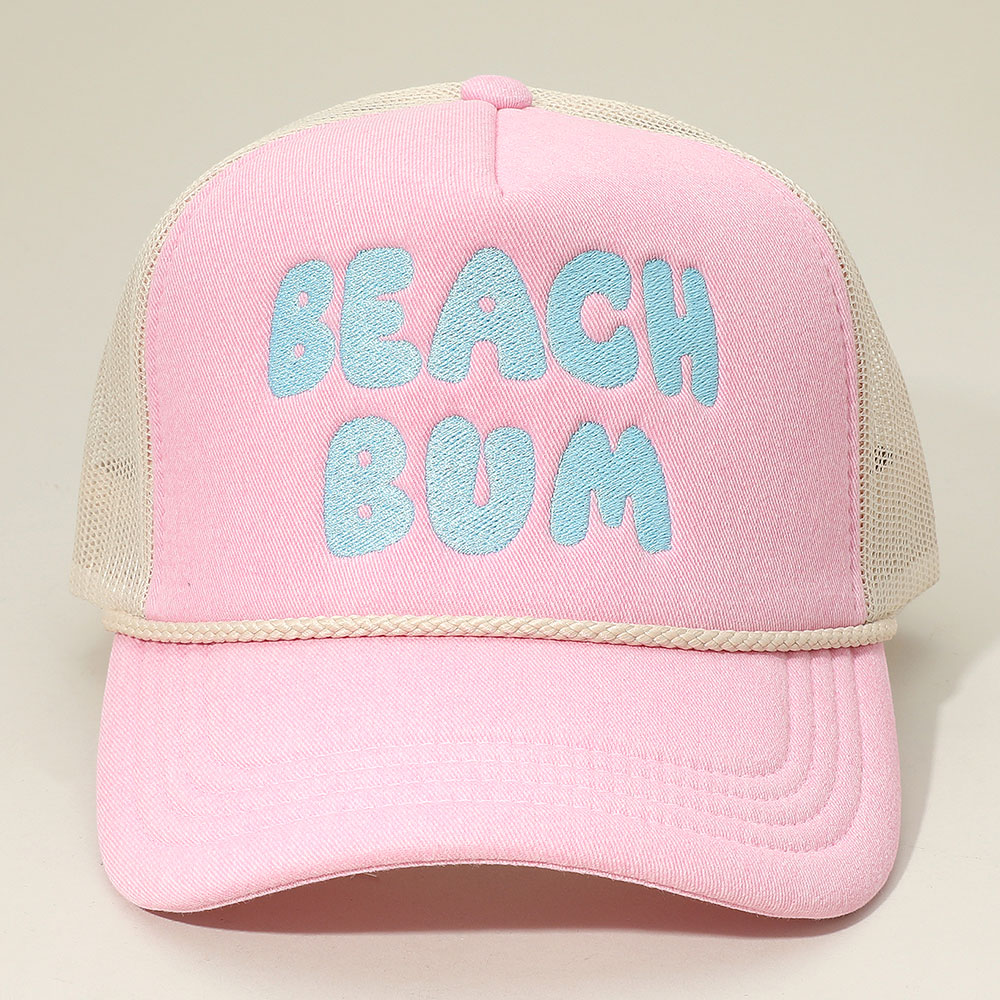 BEACH BUM Message Embroidered Mesh Back Trucker Hat