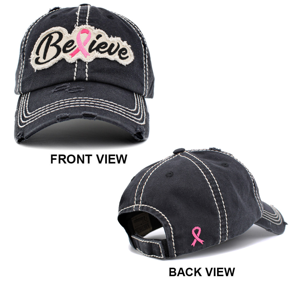 Believe Message Pink Ribbon Accented Vintage Baseball Cap