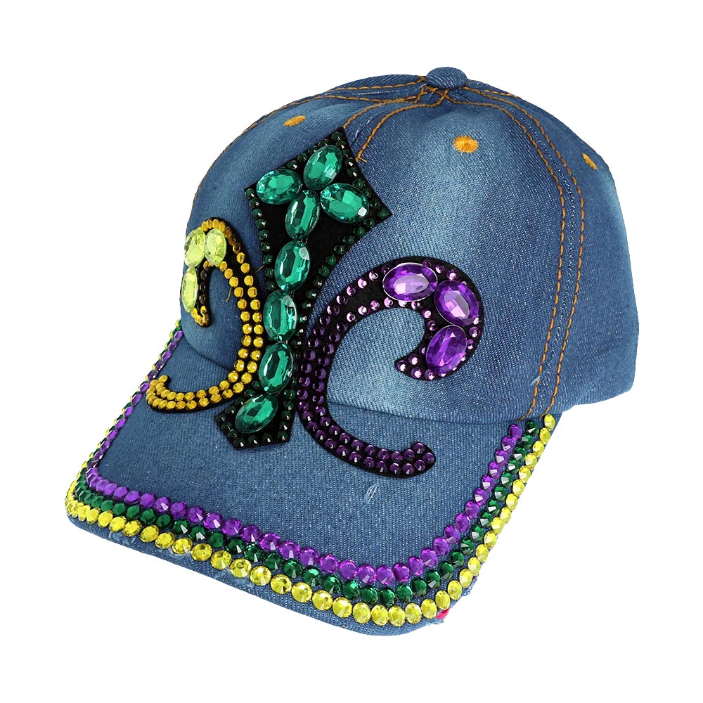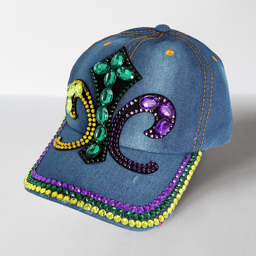 Bling Studded Mardi Gras Fleur de Lis Baseball Cap
