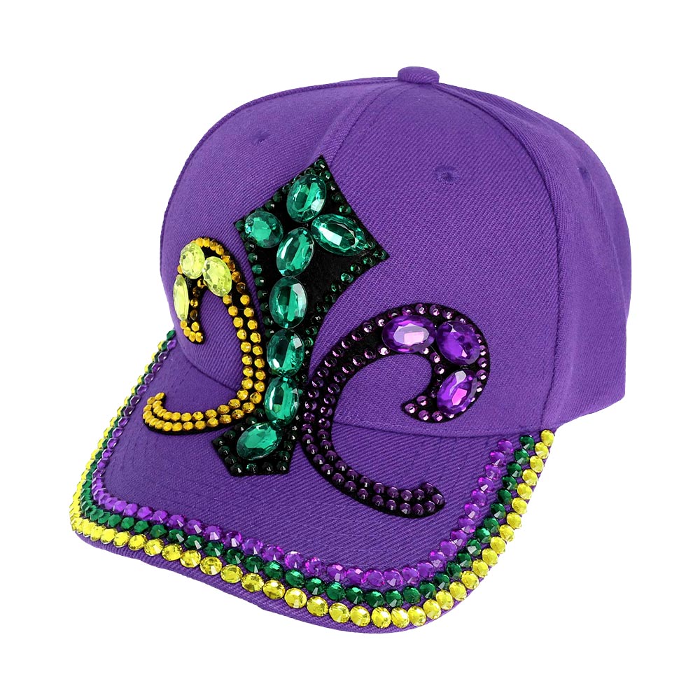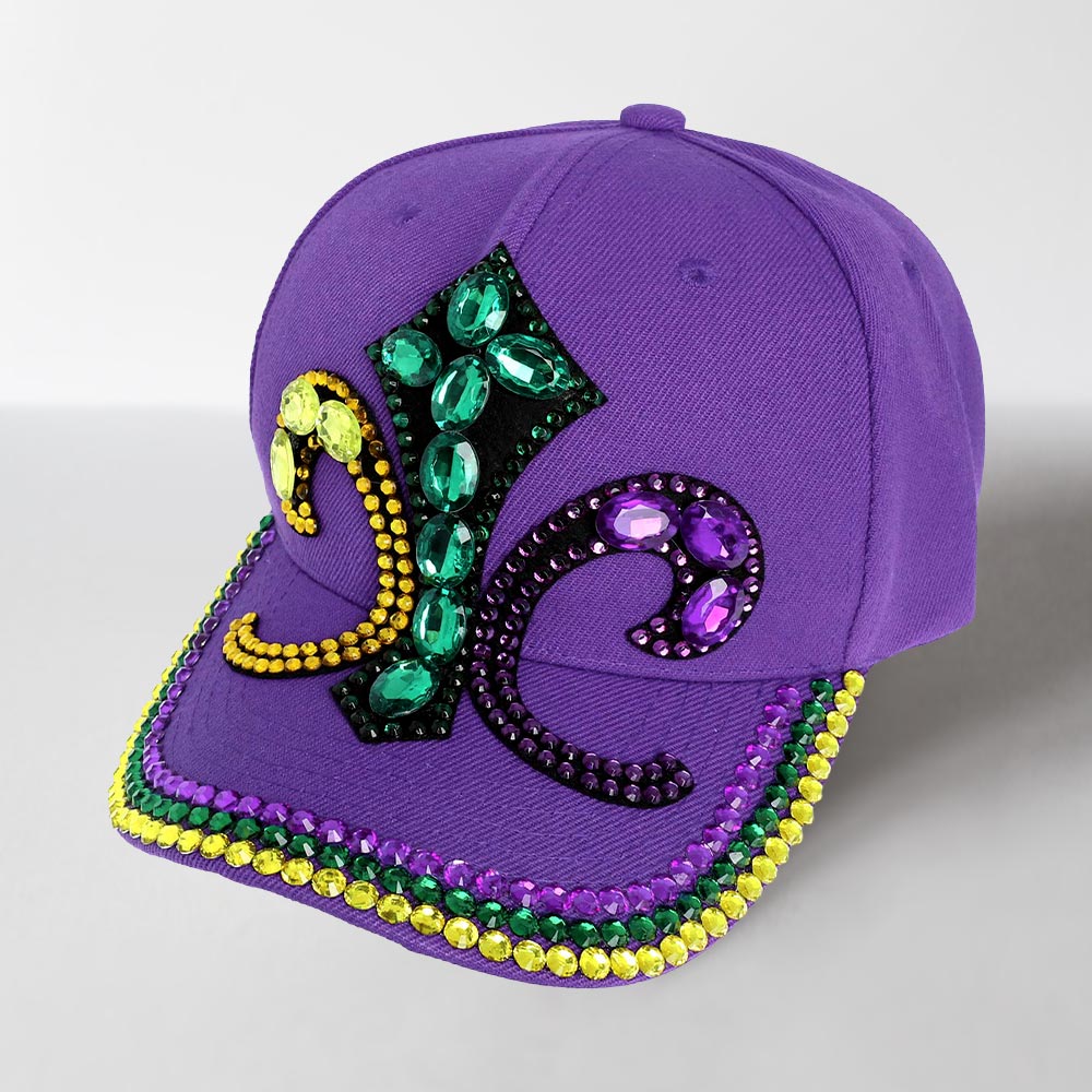 Bling Studded Mardi Gras Fleur de Lis Baseball Cap