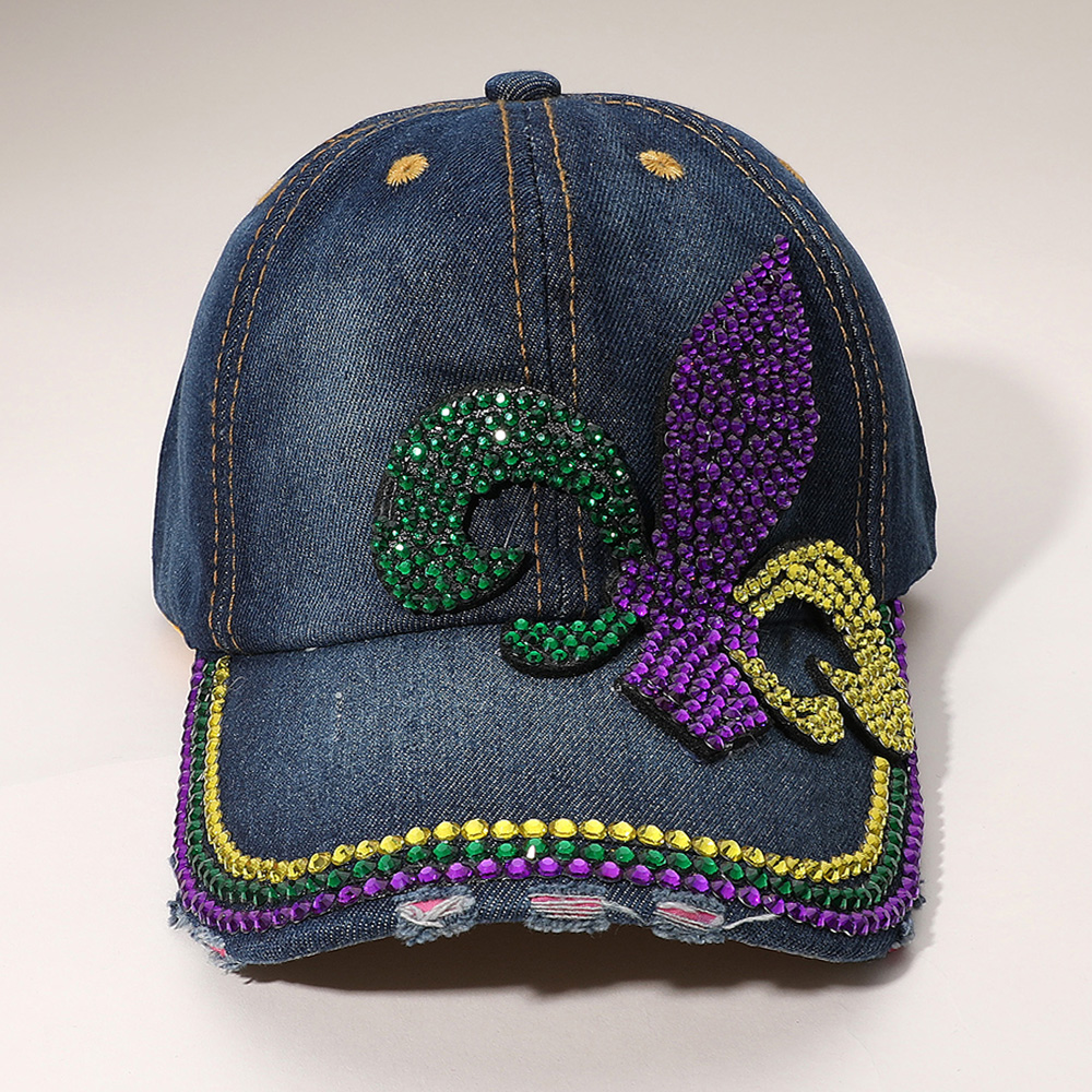 Bling Studded Mardi Gras Fleur de Lis Baseball Cap