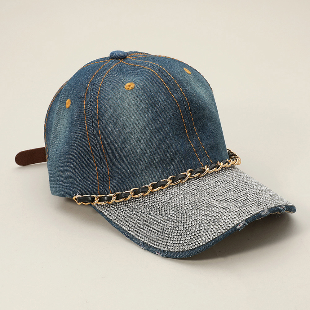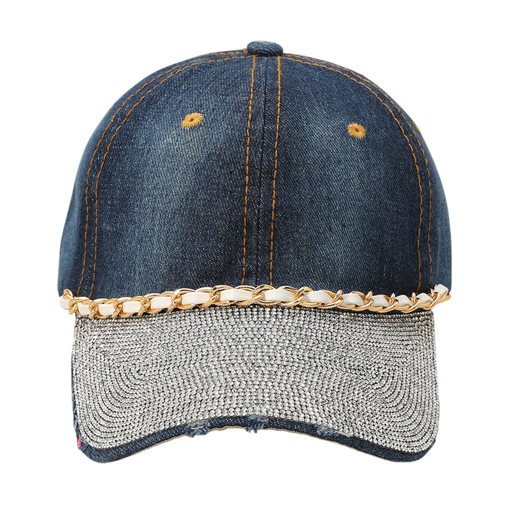 Chain Detail Bling Studded Brim Denim Vintage Baseball Cap