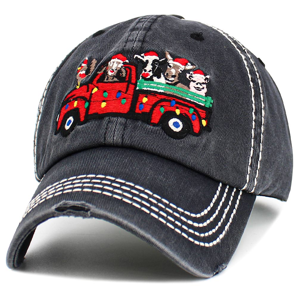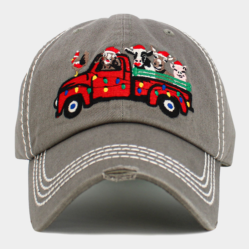Christmas Truck Embroidered Accented Vintage Baseball Cap