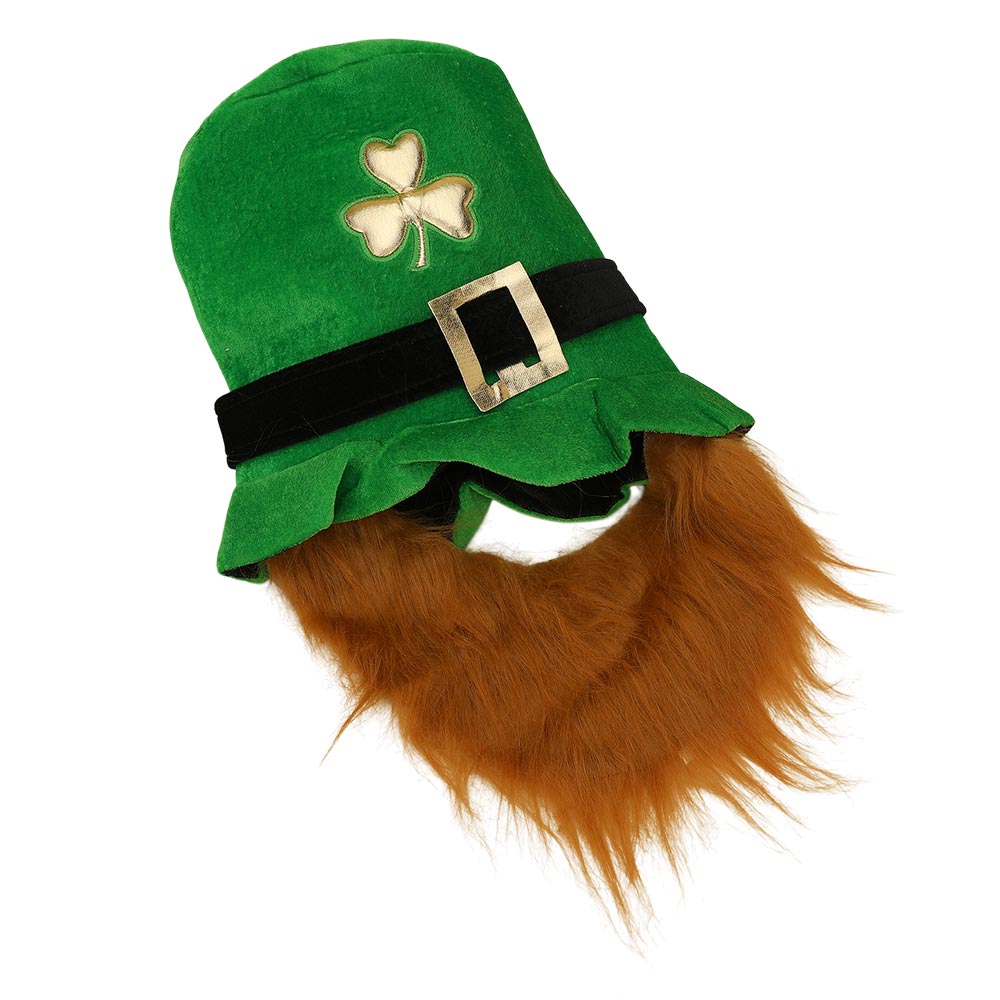 • Classic leprechaun costume hat featuring a shamrock detail and attached beard for an instantly festive look. Perfect for St. Patrick’s Day parties, parades, bar events, and themed celebrations, this novelty hat adds playful character, humor, and eye-catching appeal to any holiday outfit.