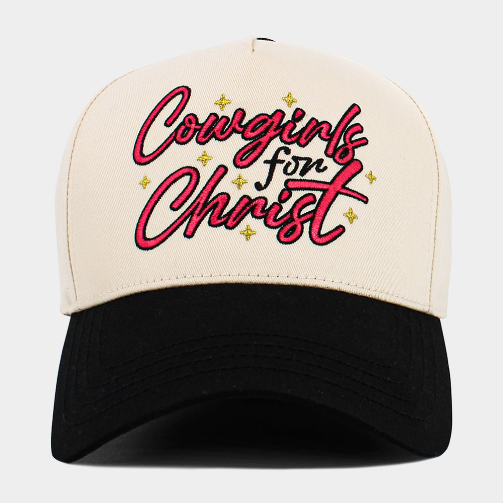 Details • Crown Circumference : 23" (Adjustable) • Crown Height : 4.5" • Brim Height : 3" • Material : 100% Cotton • Make a bold faith statement with this “Cowgirls for Christ” embroidered cap — a stylish blend of Western spirit and spiritual pride. Featuring eye-catching script and star accents, this structured hat is perfect for rodeo days, church events, or everyday wear. A must-have accessory for faith-filled cowgirls who ride with purpose.