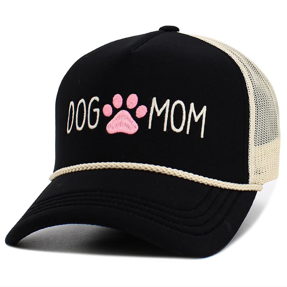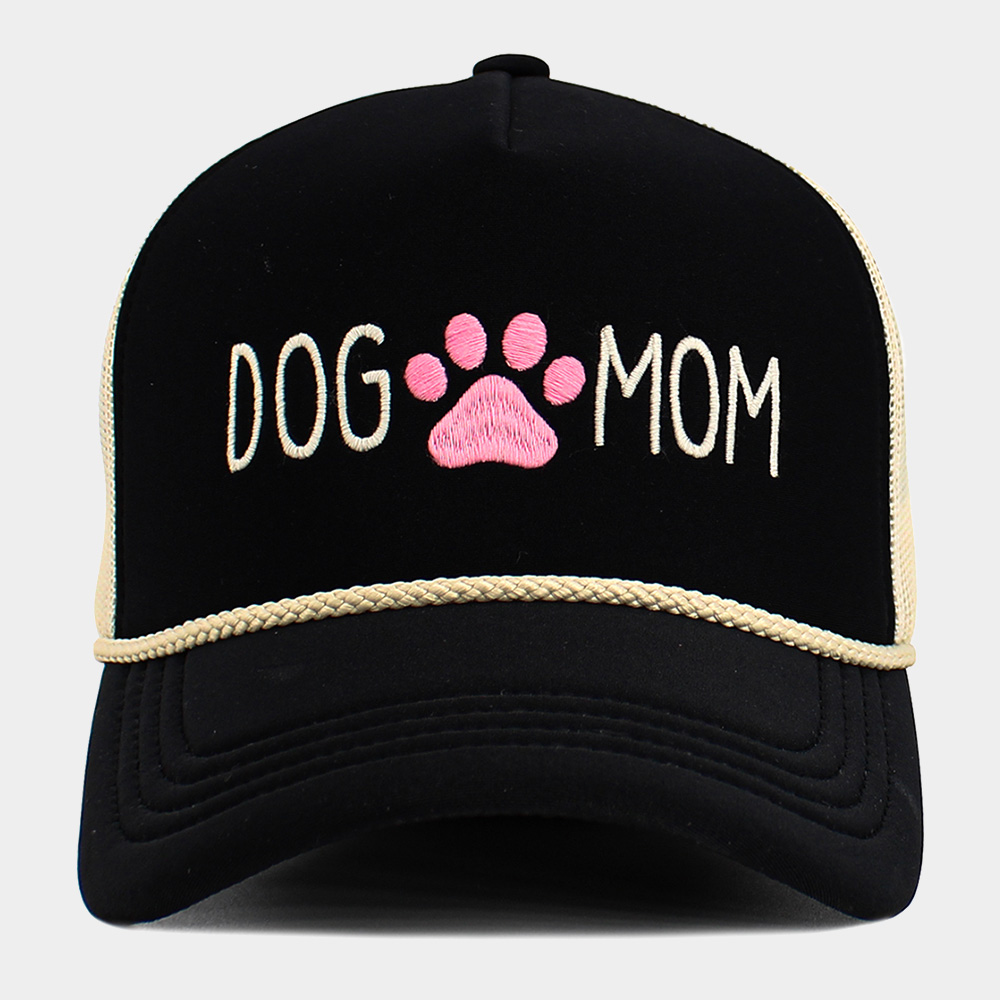 DOG MOM Message Paw Embroidered Mesh Back Trucker Hat